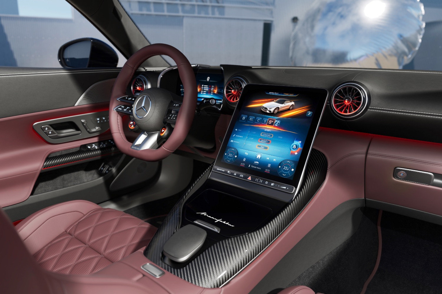 Inside, there's a 2+2 seating layout which gives the SL 63 S E a touch of practicality, and those in the front enjoy electrically adjustable AMG sports seats, which come with heating, a built-in next-level warm air vent, and a massage function.