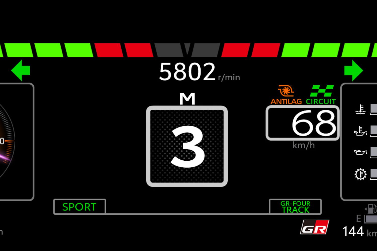 The dashboard itself has also been lowered, with the top of the instrument panel sitting some 50mm lower down to improve the driver’s field of vision, while the central control panel is now angled at 15 degrees toward the driver. The seat is also set some 25mm lower, which will be a relief to those who found the old GR Yaris’ seating position too high up. That new 12.3-inch fully digital instrument panel has two layout modes - normal and sport, the latter providing a sports performance-focused data display. The design is free of any superfluous ornamentation, so graphics a clear and information can be instantly viewed and understood. On the automatic model, the read-out includes transmission oil temperature and a visual warning in addition to a sound alarm to alert the driver when engine revs are too high for downshifting.