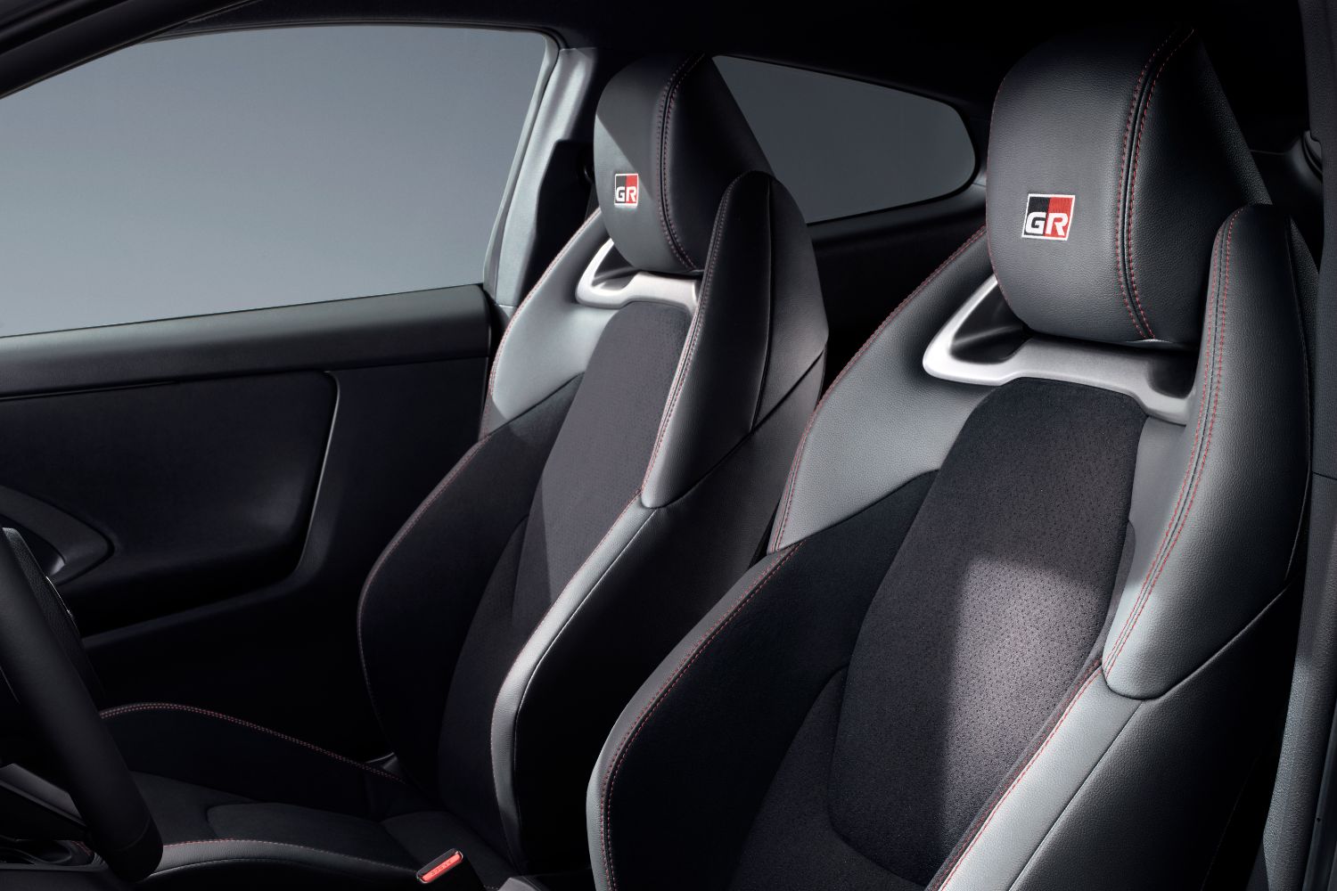 Inside, the GR Yaris’ cabin has been given a going-over, and it now gets new digital instruments, an upgraded central infotainment screen, and repositioned controls and switches, apparently in response to feedback from racing and rally drivers. Controls that often need to be used in competition driving, such as intercooler spray, stability control switch, and hazard lights, have been moved closer to the driver so they can be reached quickly and easily when using a racing harness. On the passenger side, the tray in the instrument panel has been made larger so there is space for extra gauges or a co-driver’s monitor to be fitted.