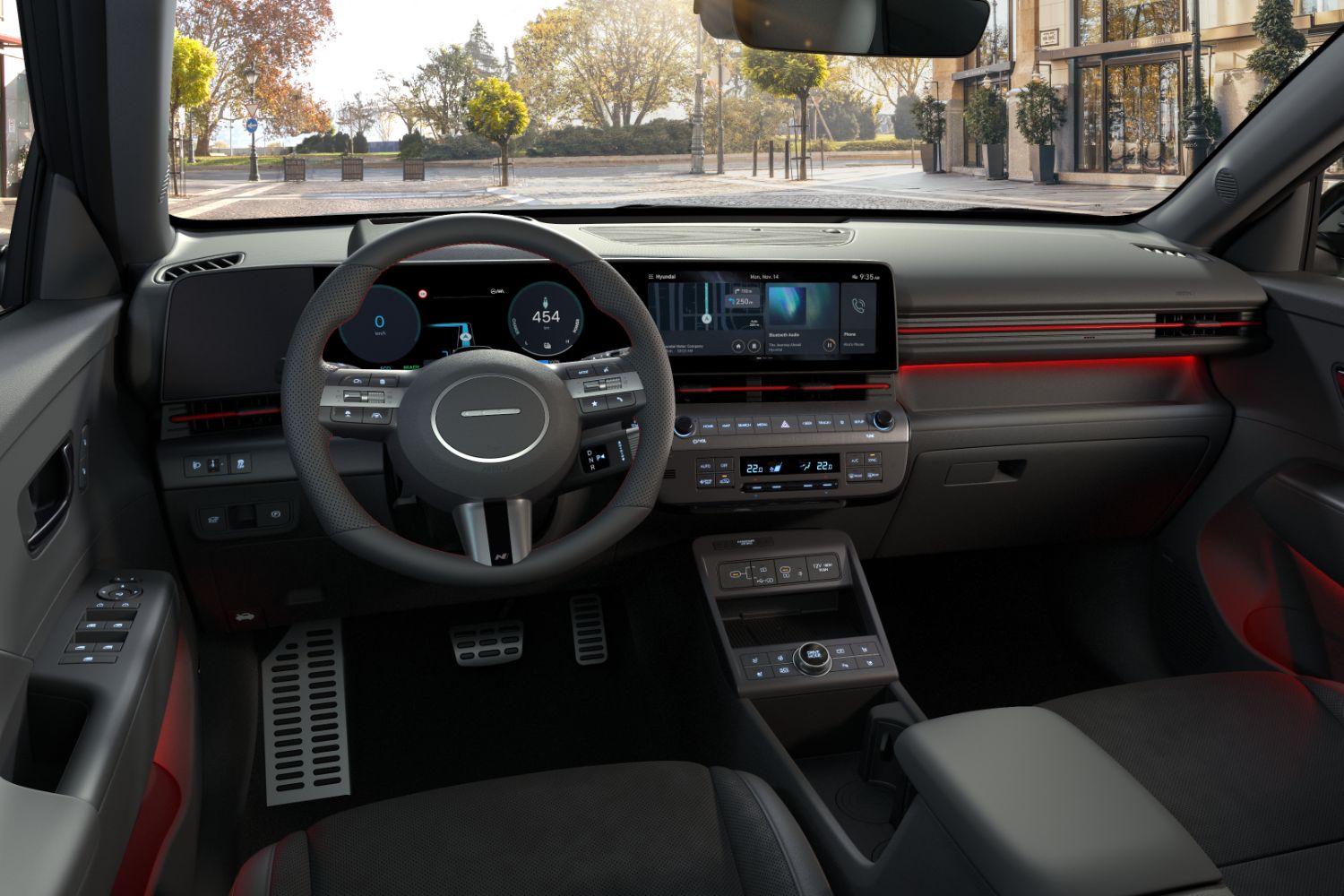 Other N-Line additions include a sportier steering wheel, glossy black door mirror caps, metal pedals, an optional two-tone black roof, and black headlining in the cabin.