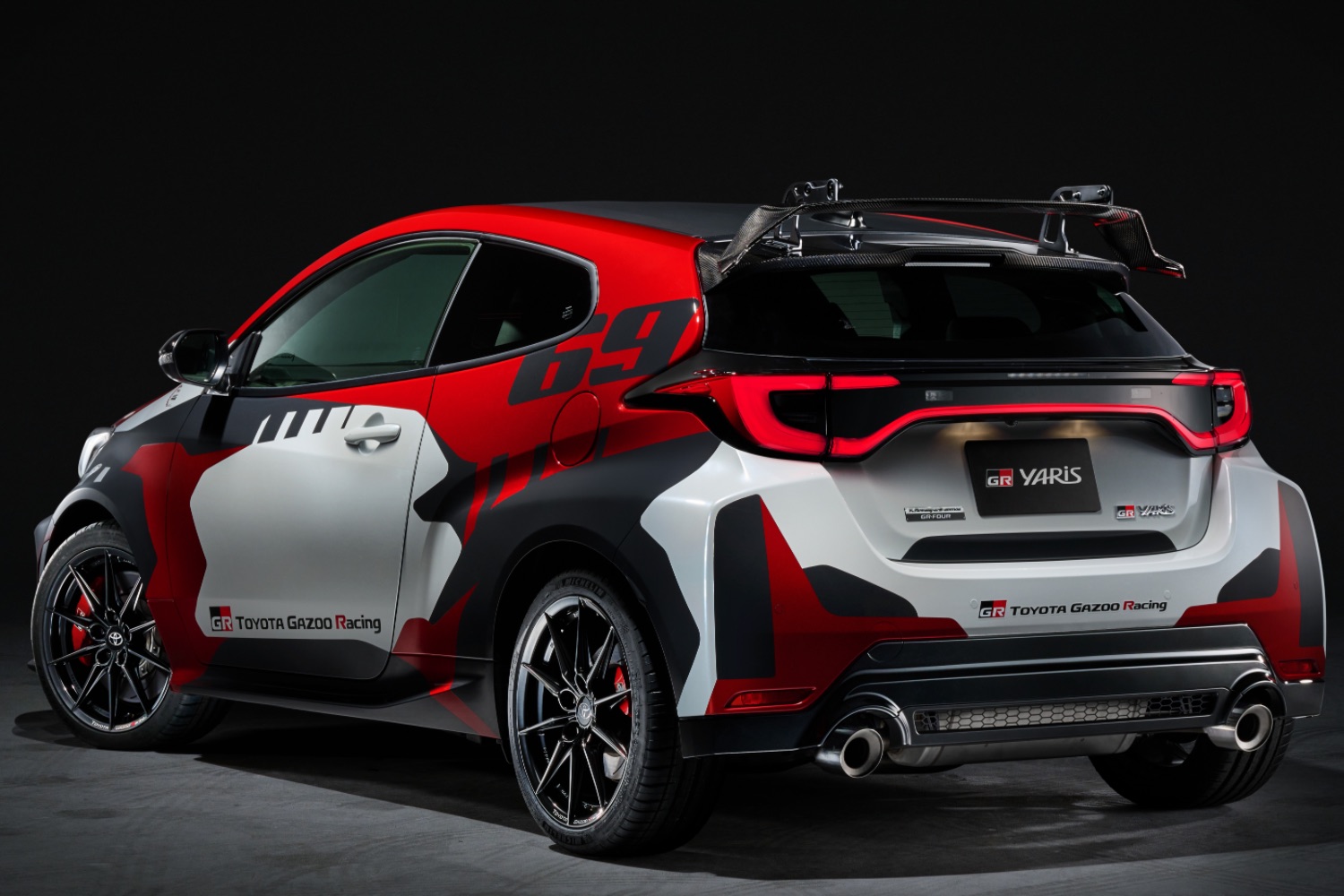 Then there's the three-tone Rovanperä Edition colour scheme designed around the driver's crash helmet and WRC victory decals, as well as 18-inch alloy wheels (this time without the French flag's colours) and the variable rear wing. As with the Ogier Edition, the Rovanperä Edition also gets its own logo on the tailgate and Toyota Gazoo Racing decals on the doors.