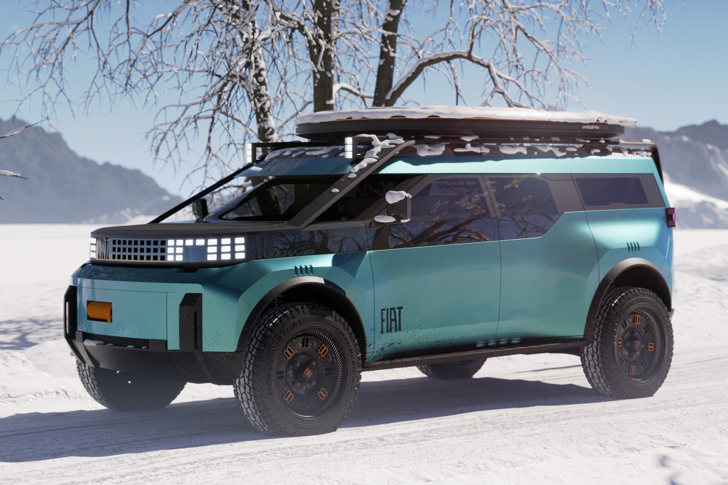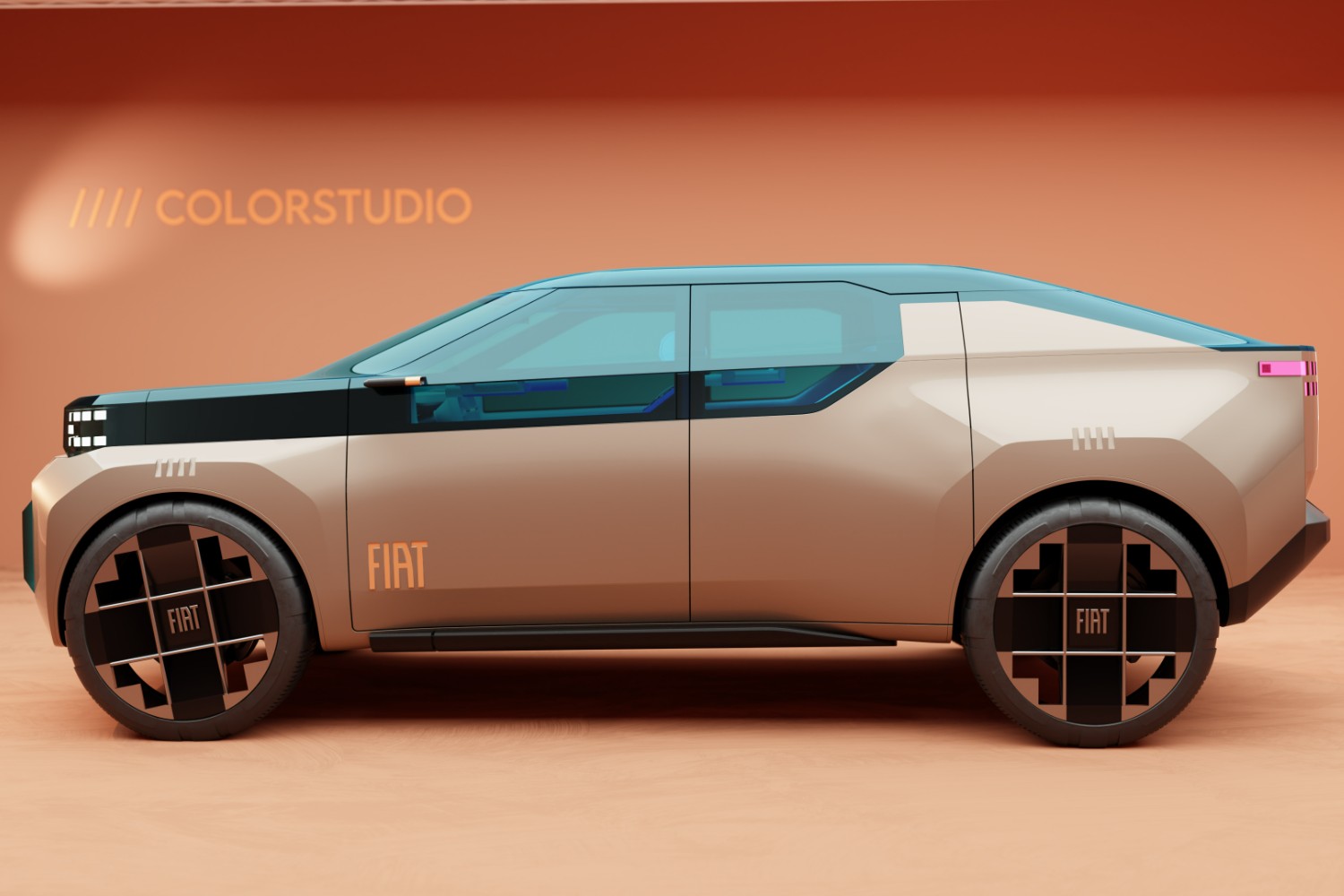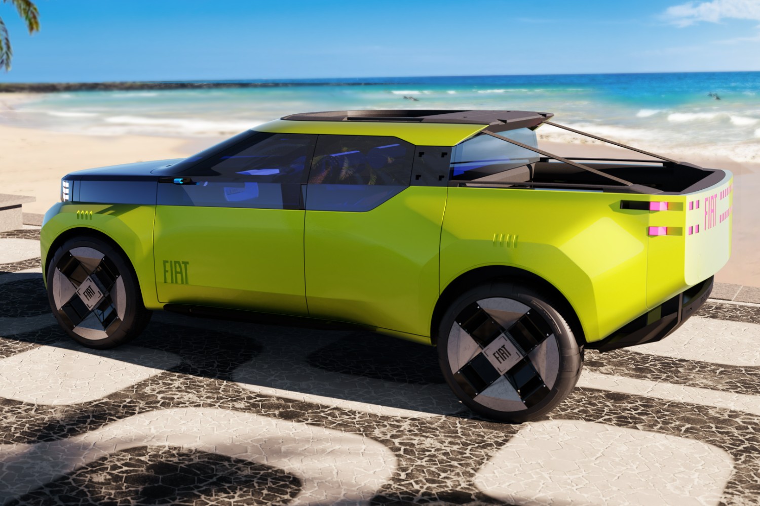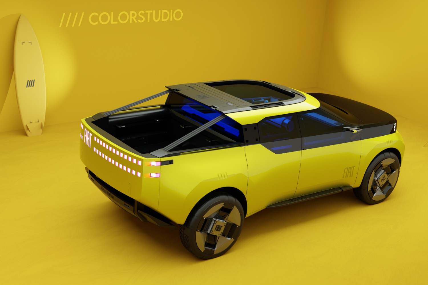 The Panda will also spin off into an SUV model, which Francois calls "The Panda Extra-Large" which will copy some of the pick-up's modularity but which will add seven-seat flexibility to become a rival to the likes of the Dacia Jogger and Duster (Citroen is planning a similar vehicle on the same platform). That Extra-Large Panda will also spawn a camper variant, which Francois showed with a folding, inflatable roof tent and even a deployable wind turbine for outback electricity. There will also be a slightly smaller SUV version called the Fastback.