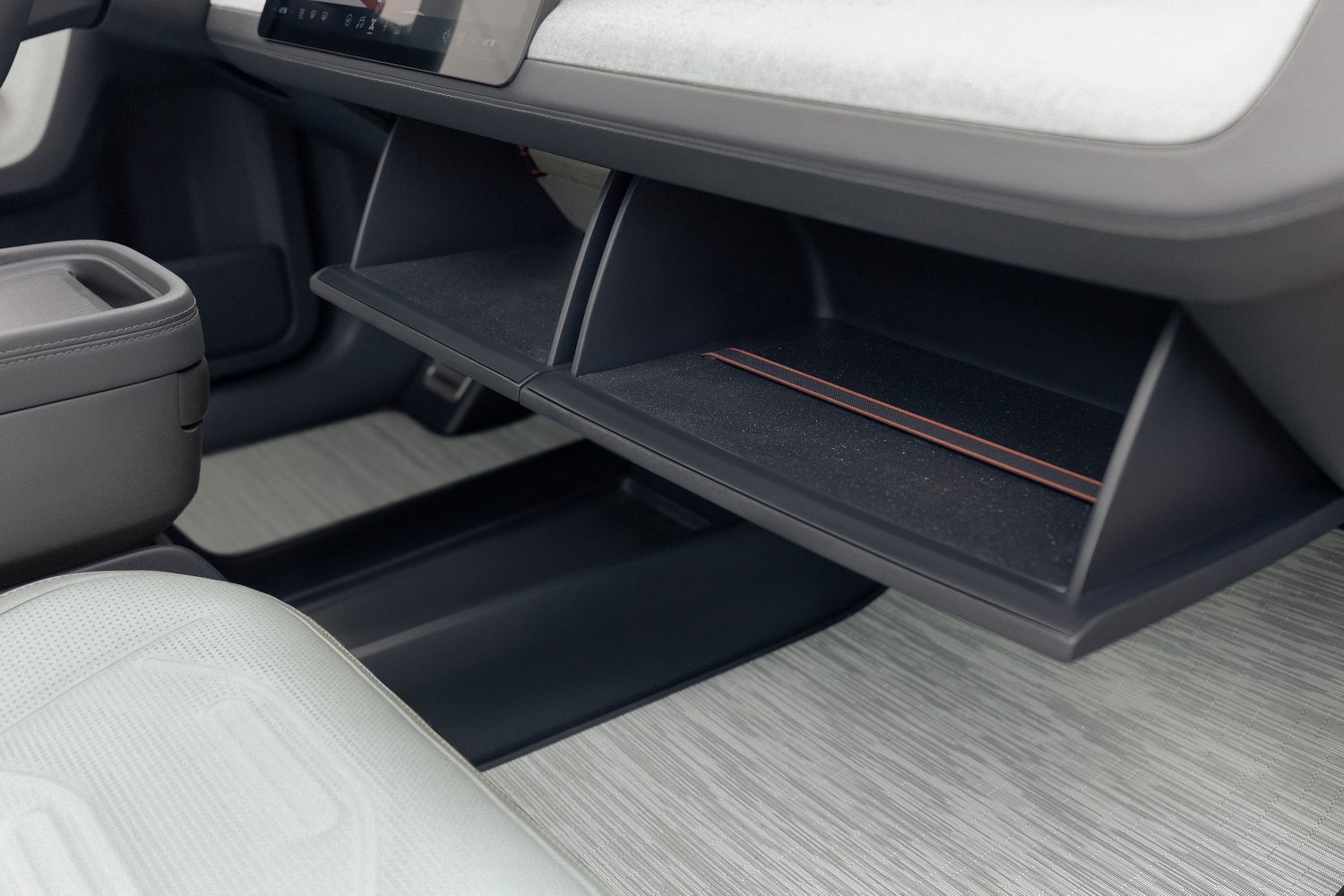 Quite apart from that performance potential, the R2 has been designed to be enormously practical. All the seats, including the front ones, fold completely flat to give an unobstructed load area which effectively turns the R2 into an ersatz camper van. As in the Fisker Ocean, the R2's tailgate glass can be lowered electrically, making for a form of open-air driving, or acting as a handy way to load smaller, lighter items into the back. There's also an enormous 'frunk' storage area in the nose, taking inspiration from the larger R1.