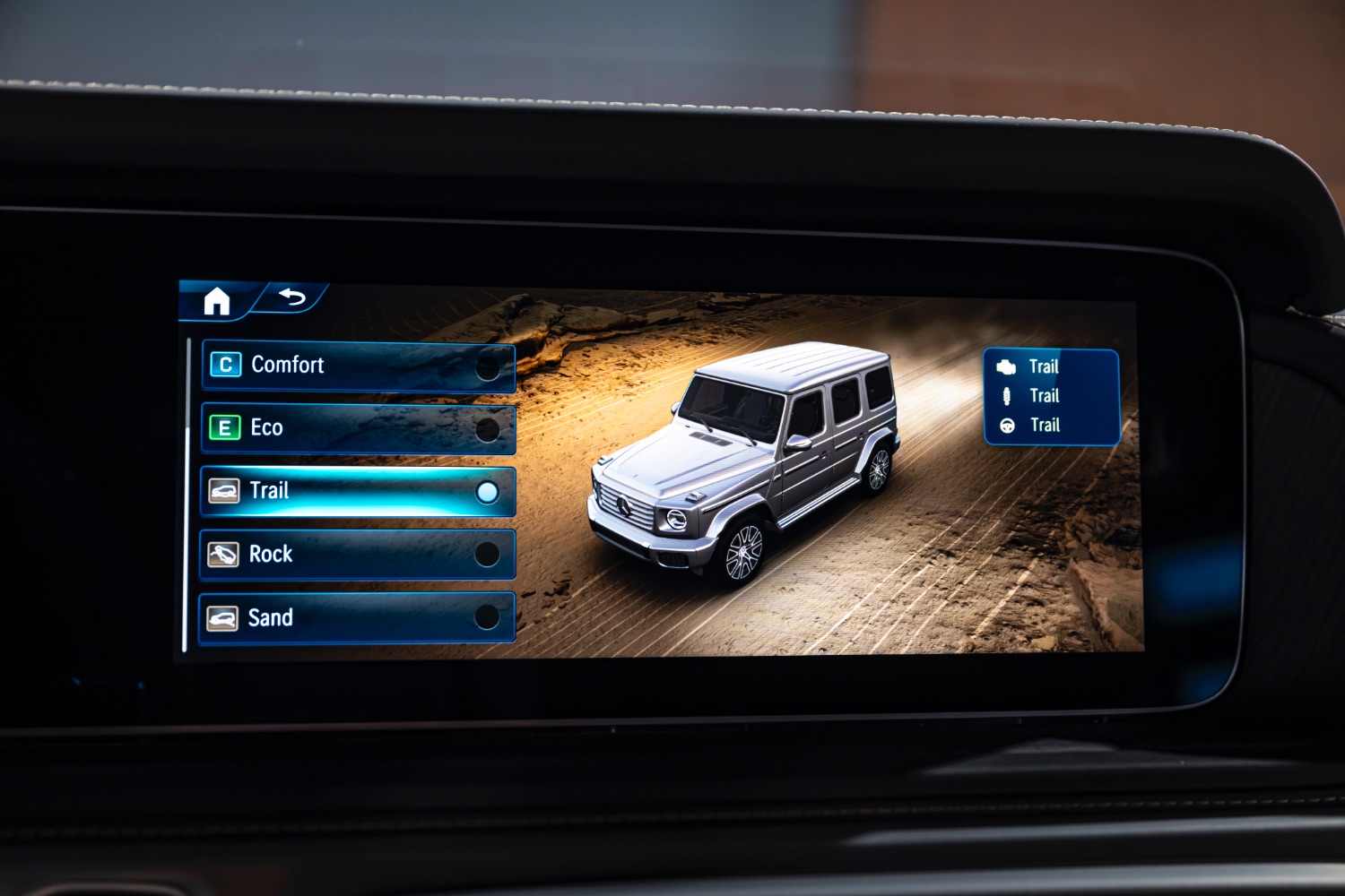 Through the Dynamic Select system, you can tailor the G-Class' suspension, steering, and engine settings to your taste, with the usual Comfort, Sport, Eco, and Individual modes, which, of course, also adjust the electronic stability control, traction control, and the gearbox shift pattern. There are also three specific off-road driving modes - Trail, Rock, and Sand.