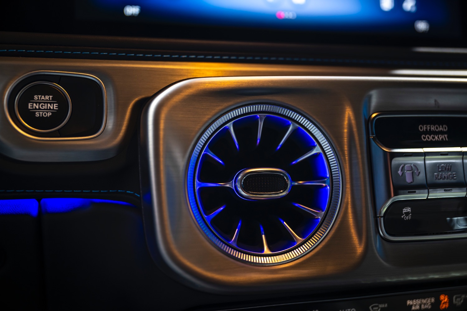 Inside, the new G-Class gets Mercedes’ MBUX infotainment system and ambient lighting as standard, as well as a leather-wrapped steering wheel. But keyless entry, temperature-controlled cupholders and a Burmester sound system are all available as an option.
