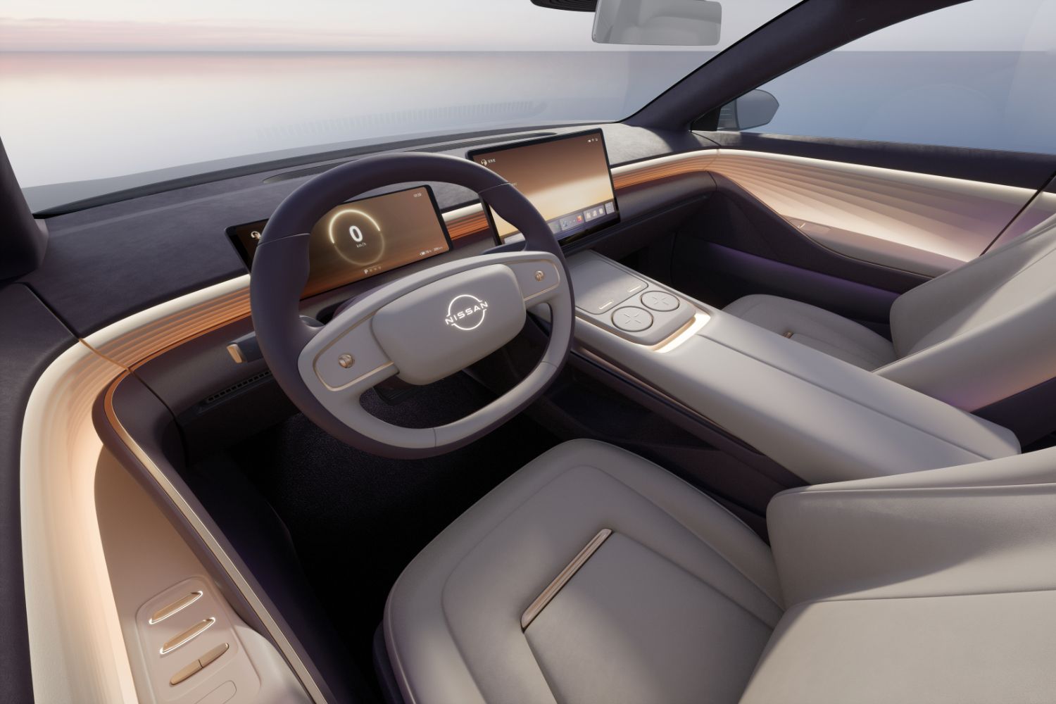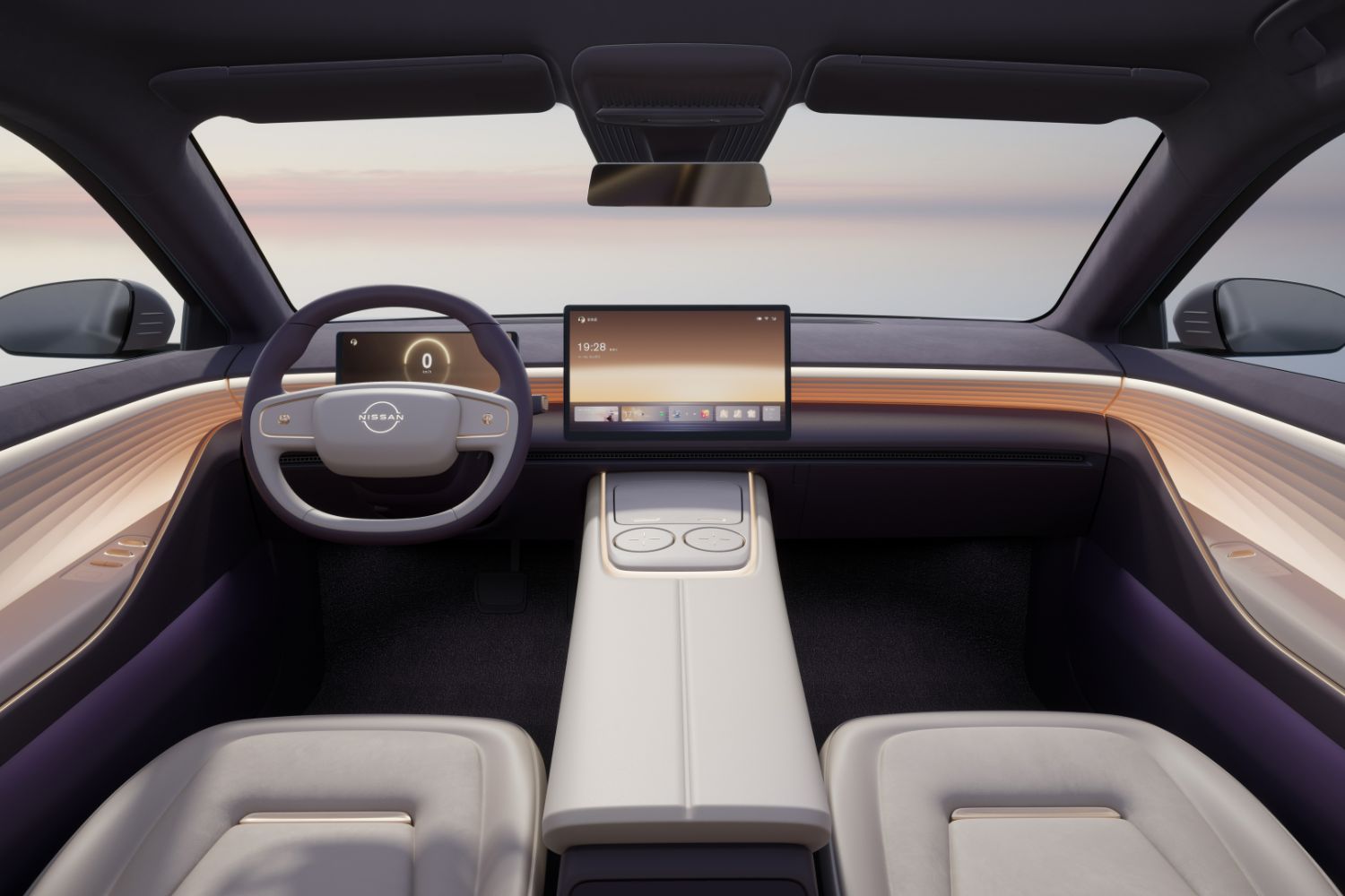 The electric saloon model is called the Epoch, and it’s designed to appeal to “urban and suburban go-getters who wish to enhance their lifestyles with design and technologies.” Nissan says the concept comes with AI-expanded connectivity technology and a virtual assistant, which offers “communication that recognizes emotions.”