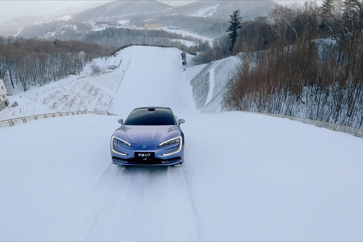 In a stunt to demonstrate the car’s electric four-wheel drive system, Yangwang recreated the classic Audi Quattro advert from the 1980s, ascending a 180-metre ski jump but - taking a swipe at Audi - saying that the U7 did not need studded tyres to make the climb.