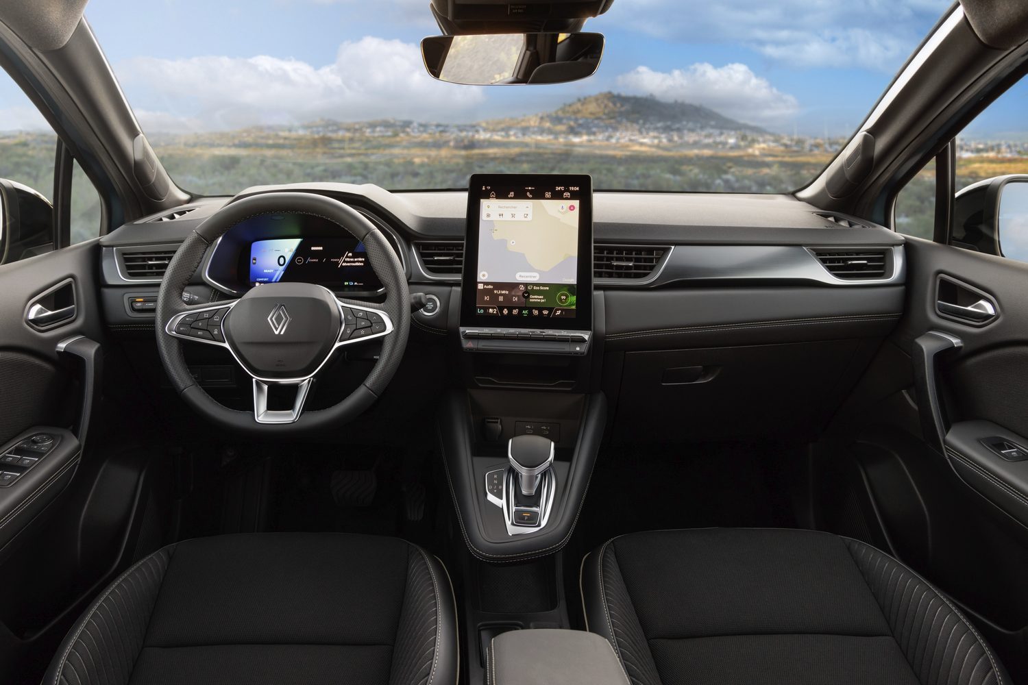 Visually, the Symbioz follows the sharp-edged appearance of Renault’s latest models, all released under the eye of Gilles Vidal, the company’s design director. It has the sleek headlight clusters, the new and large Renault corporate logo, lightning-bolt-shaped daytime running lamps, carefully sculpted flanks and a tapering glasshouse to lighten up its visual bulk. Alloy wheel sizes range up to 19 inches in diameter on the top-spec models.