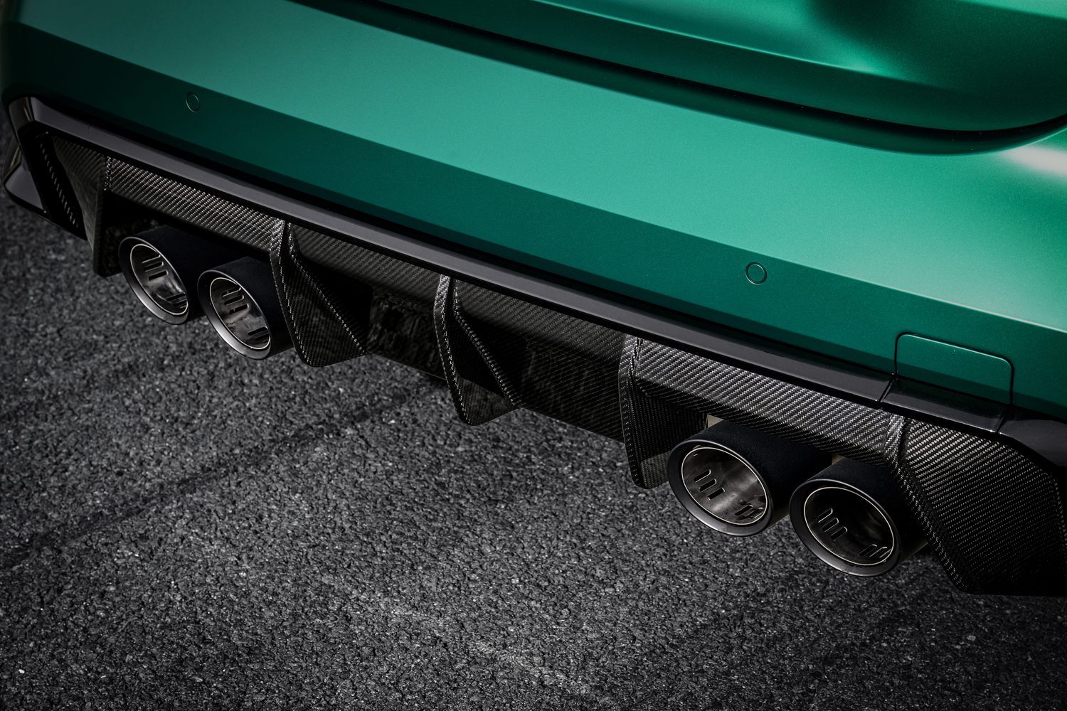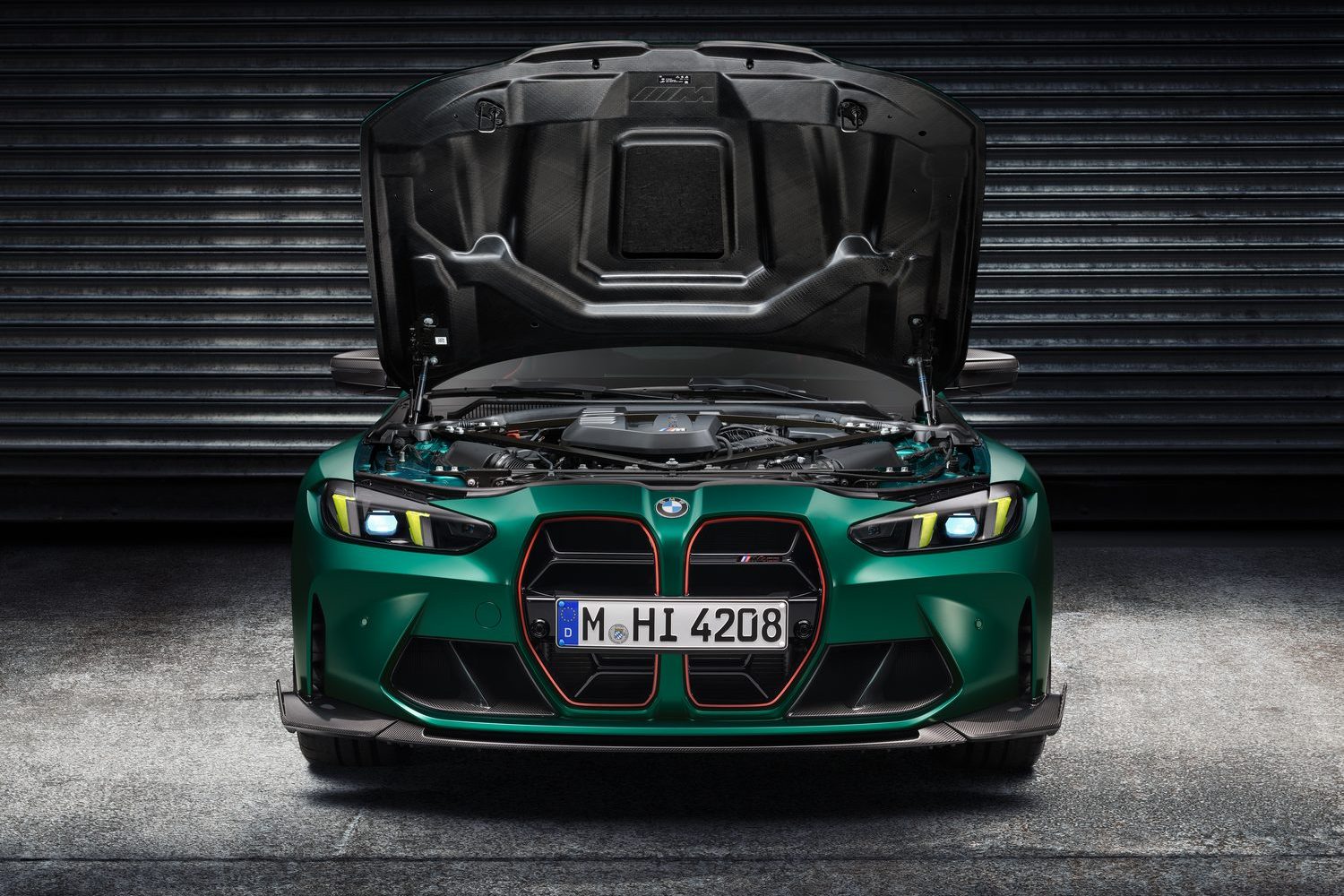 Keeping weight down is carbon-fibre-reinforced plastic (CFRP) for the bonnet, front splitter, front air intakes, door mirror caps, rear diffuser and Gurney-style rear spoiler. Inside are lightweight carbon bucket seats and a stripped back centre console. BMW quotes an overall weight reduction of 20kg - when compared with the BMW M4 Competition Coupe with M xDrive.