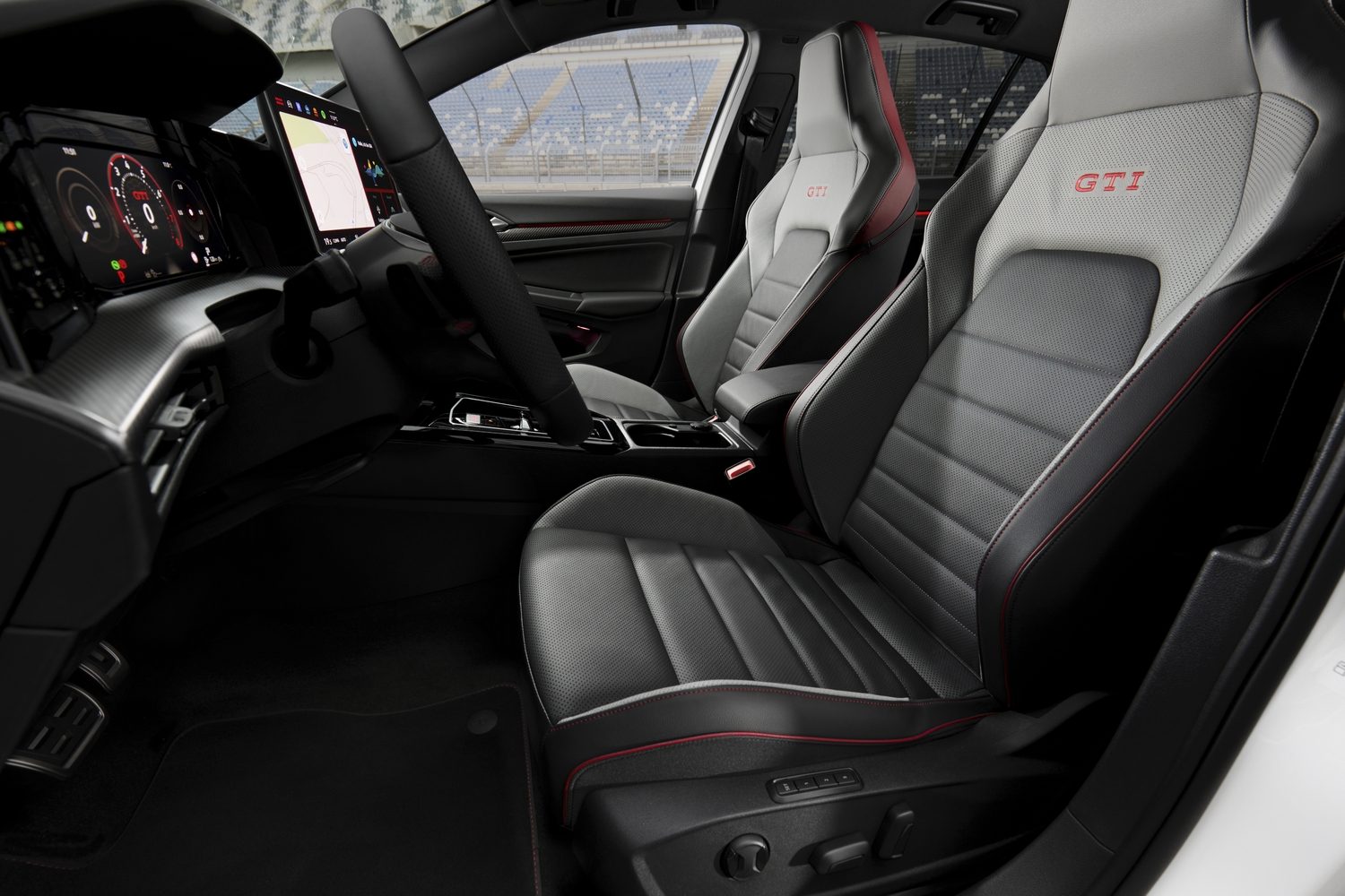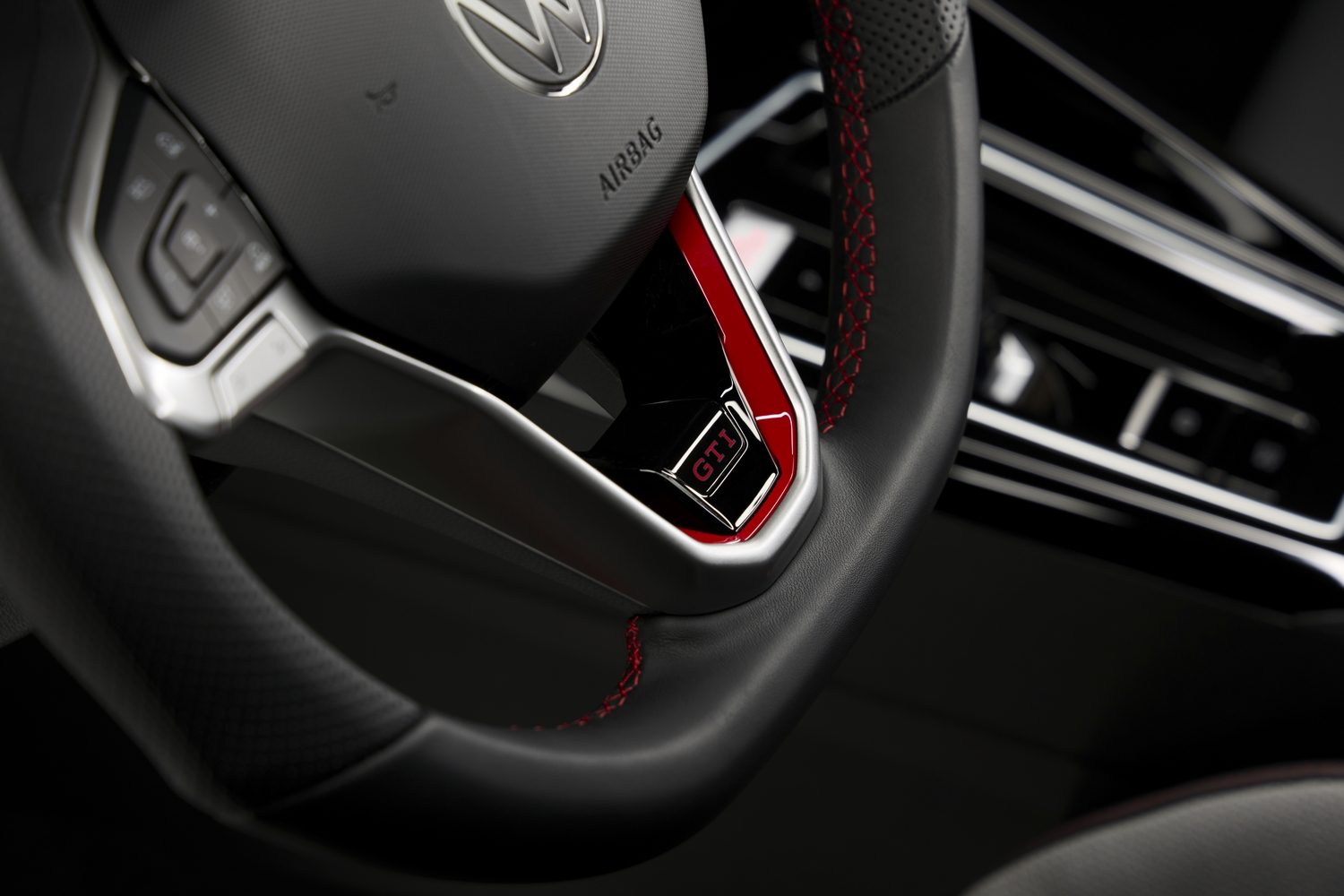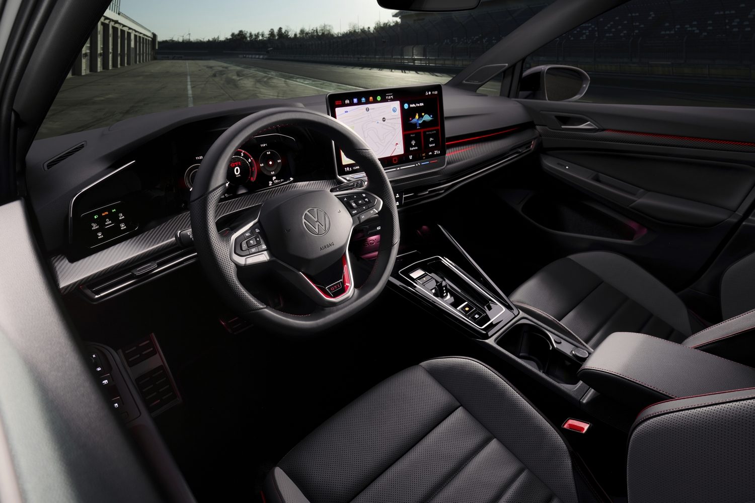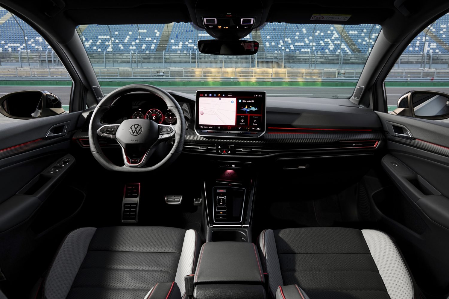 Following the lead of its range of electric vehicles, Volkswagen is also updating the interior of the Golf GTI with improved technology and connectivity. A new 12.9-inch touchscreen display includes an illuminated touch bar along its base for volume and temperature controls.