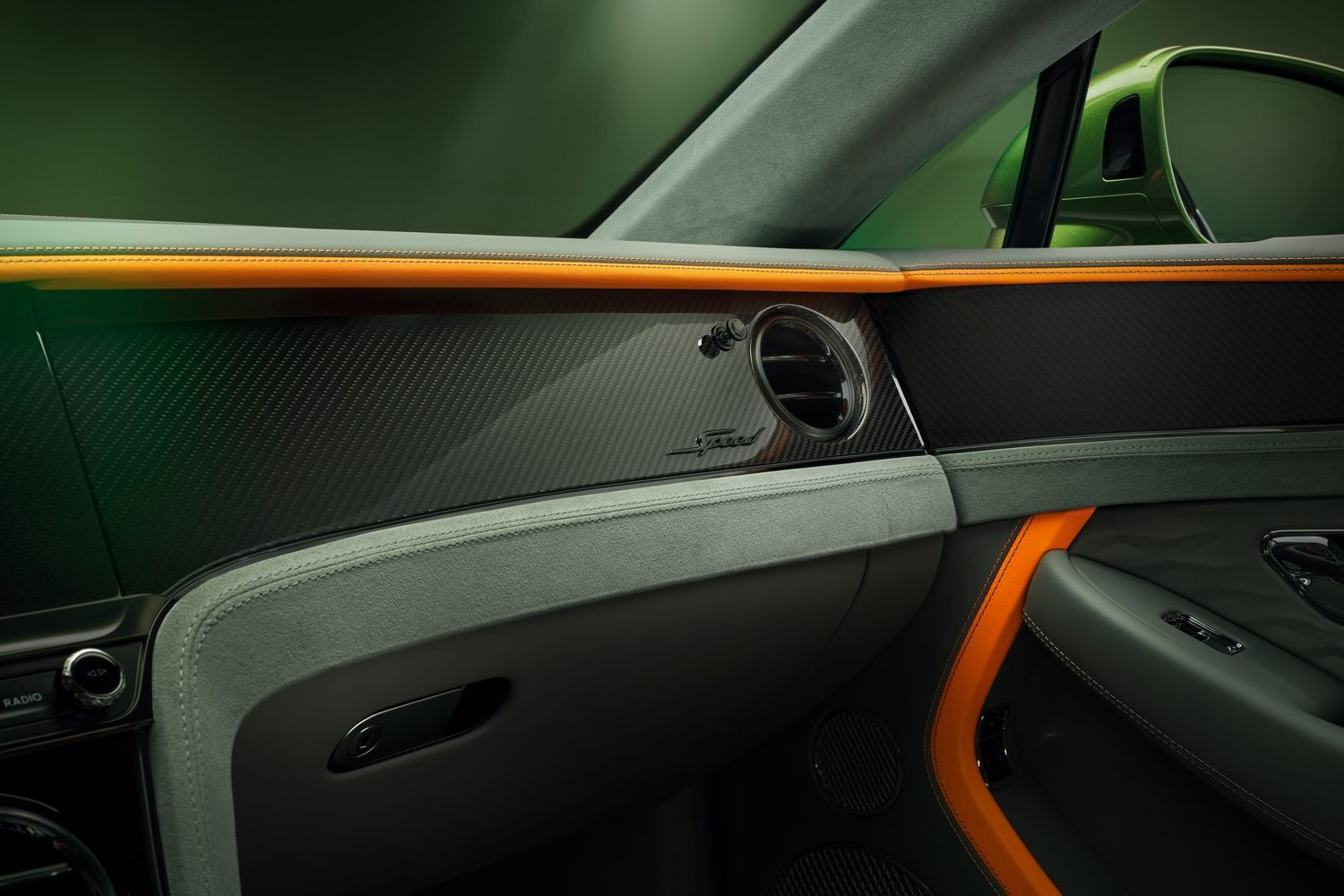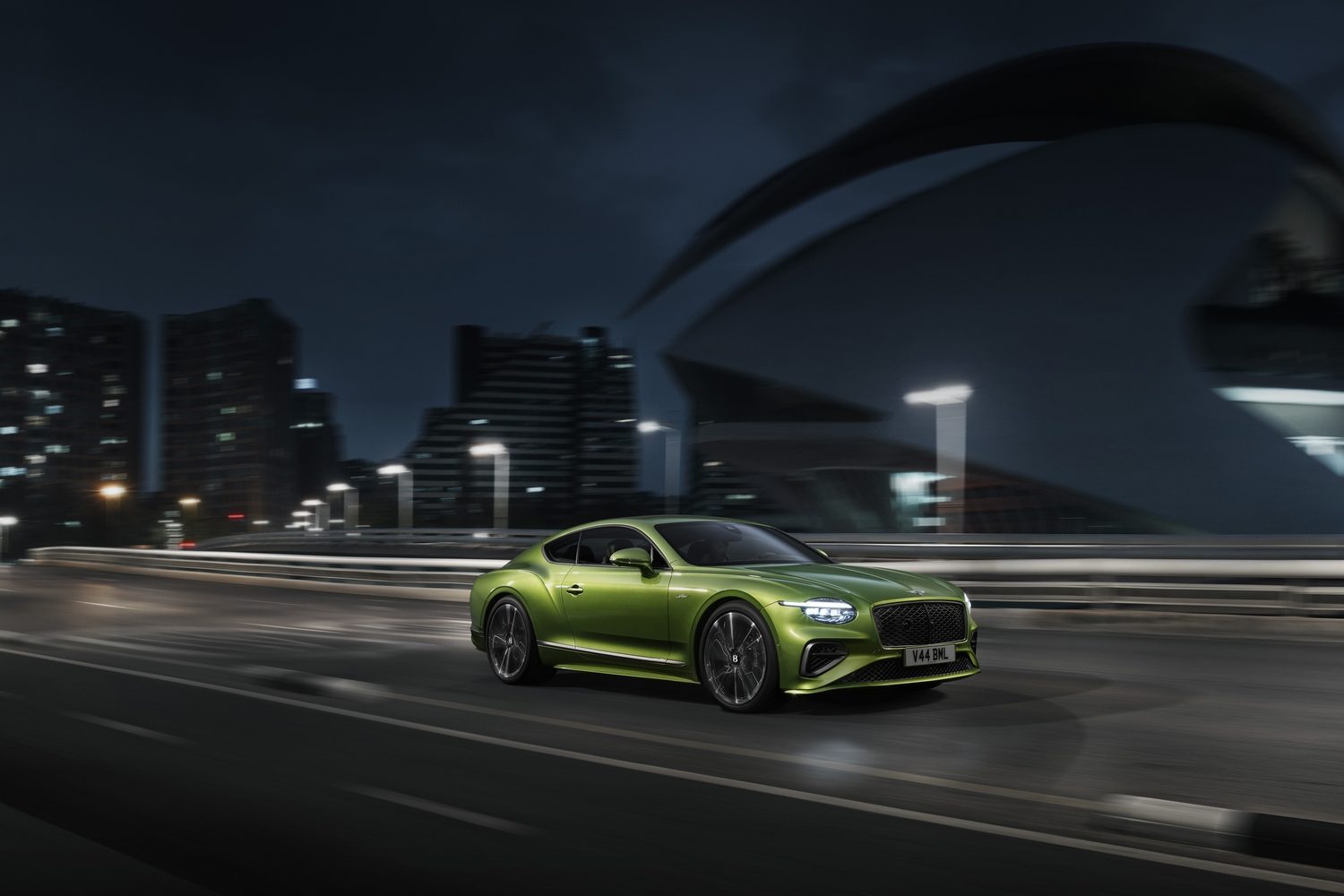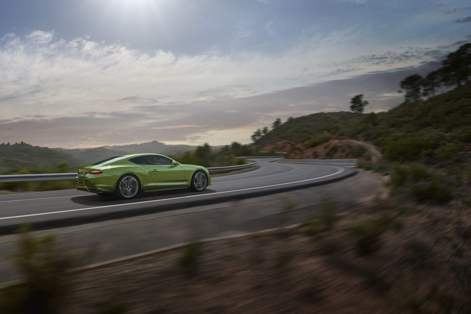 Potentially, though if it’s painted in a colour as daring as the ‘Tourmaline Green’ examples pictured here, you’ll not go unnoticed. At a glance, the style of the Continental GT is familiar, though it is the first mainstream Bentley to use single headlamps since the 1950s, the new lights clearly inspired by those of the limited-edition Batur. They’re intricate in detail, an approach that has been applied to the rear lights as well. There you’ll find a subtly-integrated spoiler and not-so-subtle bumper with large, stylised exhaust outlets. A set of 22-inch wheels finish off the design, offered in a variety of finishes.