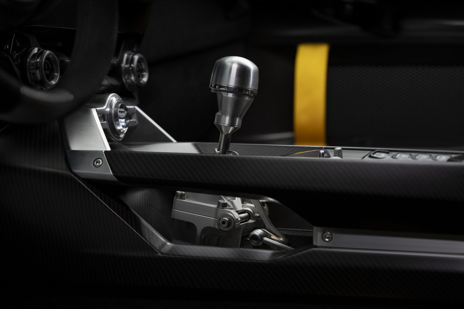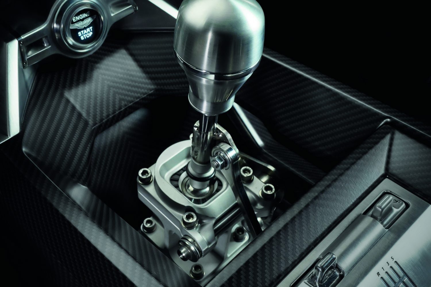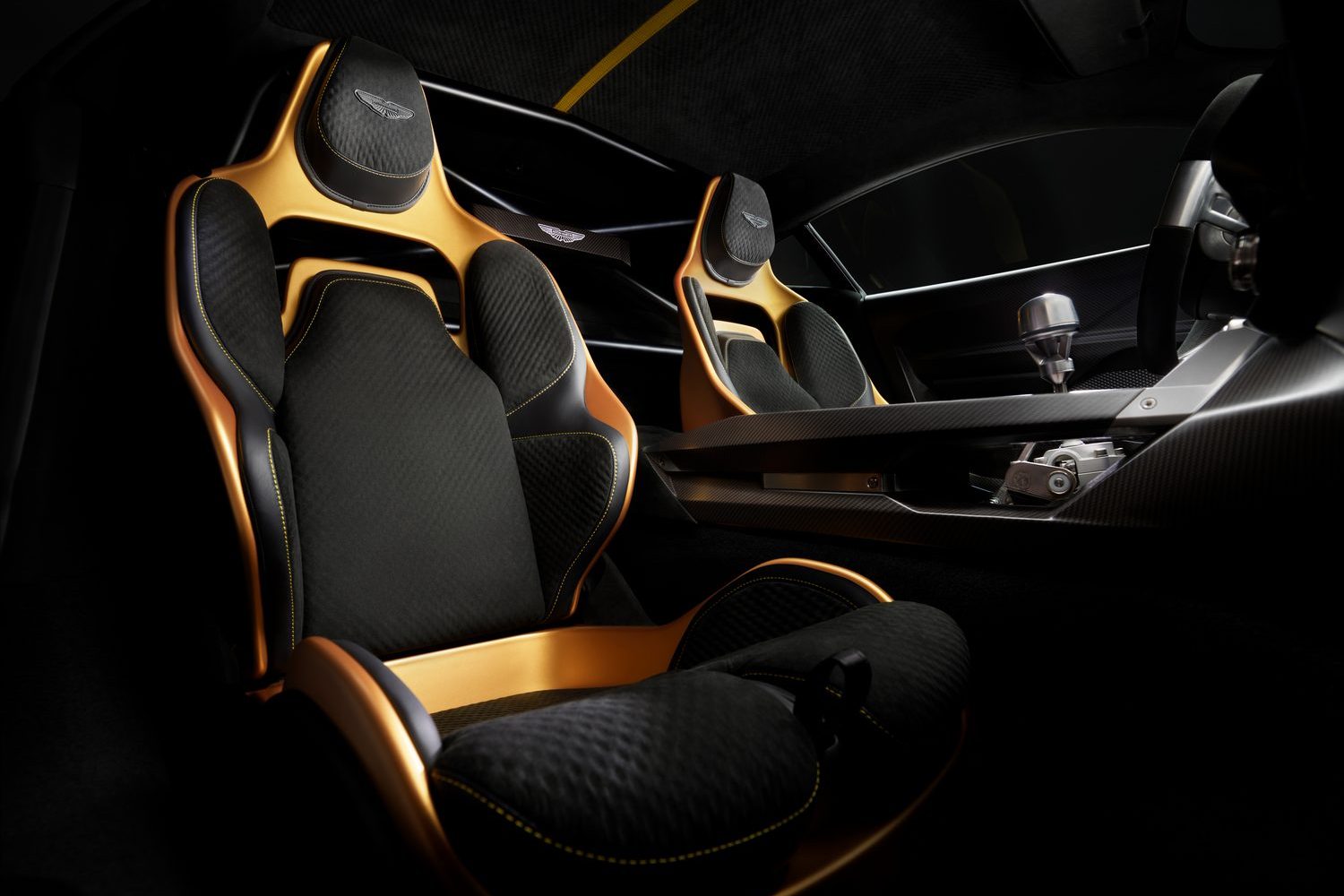 Back in the main cabin, the Valiant has a stripped-out vibe, but not completely, as it’s still as Aston Martin. We love the exposed linkage for the manual gearbox and the perfectly-round, Alcantara-trimmed steering wheel, while the expensive-looking seats are Recaro Podium items. Four-point harnesses can be added and mounted to the half-cage behind. Buyers can choose from a variety of materials and colours throughout of course as the Valiant is a product of the “Q by Aston Martin” division.
