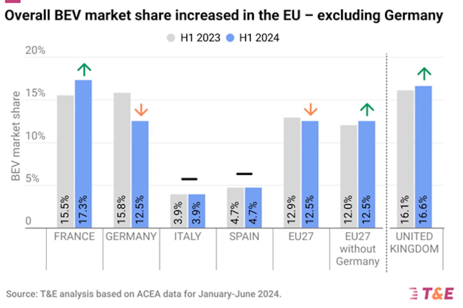 So, what is holding back the German electric car market? The answer seems to be that the German government suddenly and abruptly removed all purchase incentives for electric models. As T&E claims: “A stable and supportive regulatory environment is key to avoiding stagnation and locking in investment.” The think-tank called on German lawmakers to follow Belgium’s company car policy, which sets attractive depreciation rates for electric cars and phases out depreciation for combustion engines. As a result, BEV sales in Belgium increased by 48 per cent in the first half of the year.