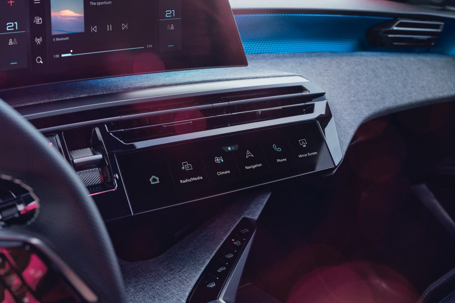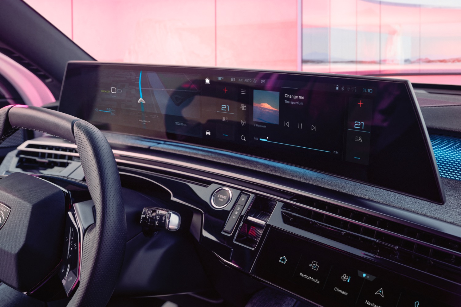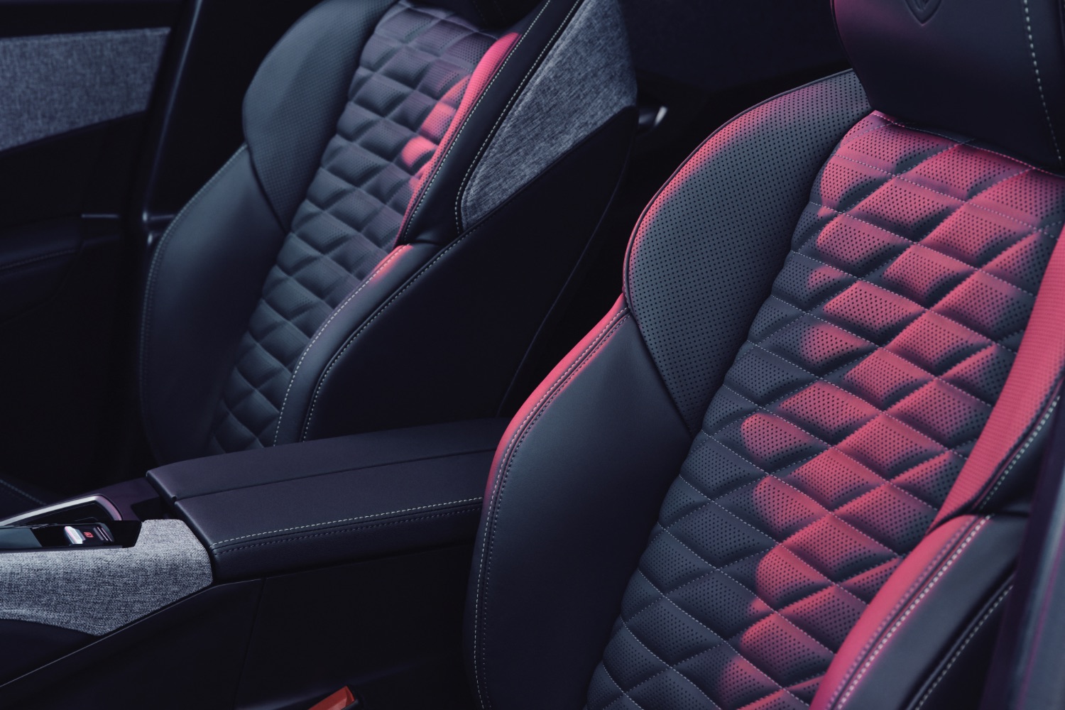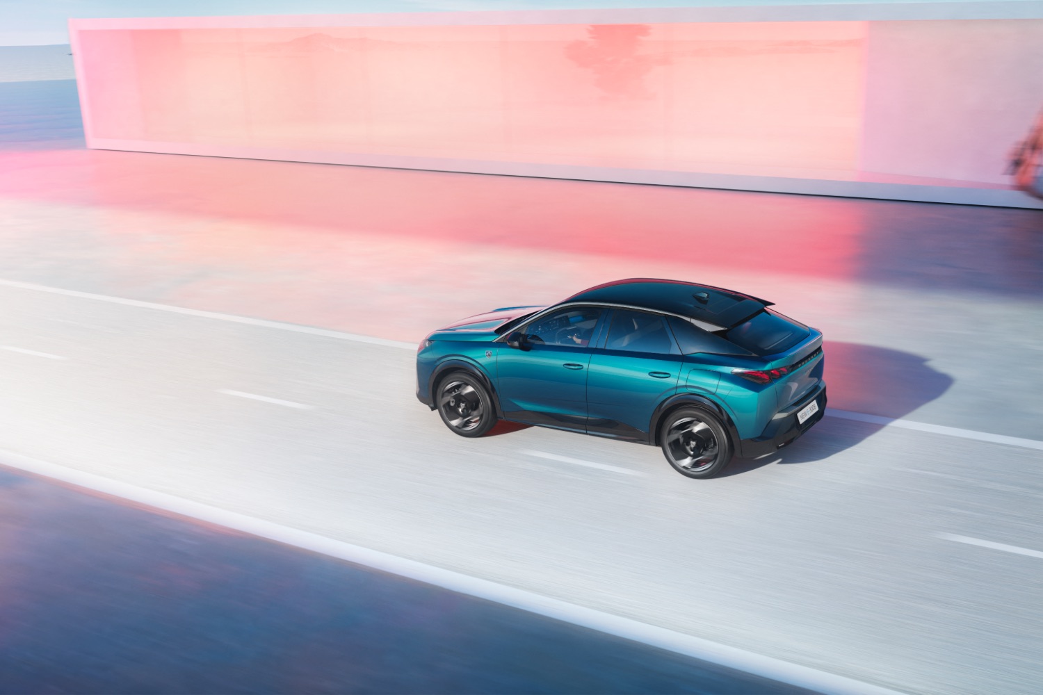 GT models add ‘Pixel’ LED headlights, 3D-effect LED rear lights, eight-colour ambient cabin lighting, frameless electrochrome rear view mirror, Alcantara and leather trim, with heated front seats, contrast black roof and rear spoiler, electric tailgate with handsfree operation, rear central armrest with cupholders and storage, ‘Highway Assist’ electronic driver assistance, the Peugeot ‘Shield’ badge on the front wings, and for the electric model in GT form, standard 20-inch alloy wheels.