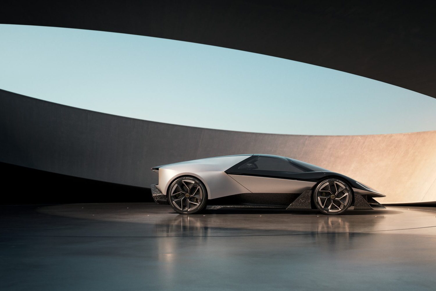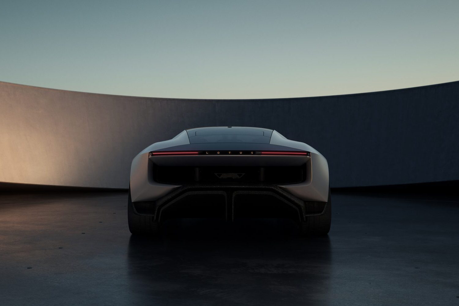 At around 4.5 metres long, two metres wide and just 1,140mm tall, Lotus has managed to keep the weight of this car down, speaking in EV-relative terms, and so it should come in at less than 1,600kg - mainly because its chassis ‘tub’ is made of recycled-chop carbon fibre, while the body is constructed of cellulose composite and polycarbonate. Even the windows of the Theory 1 are made of recycled glass.