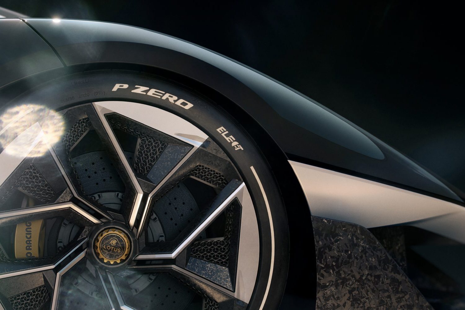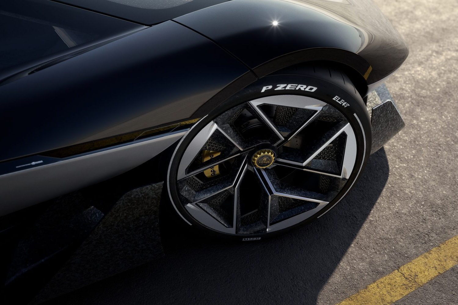 Hopefully so. With an active damping system coupled up to front and rear double-wishbone suspension, the Theory 1 aims to preserve Lotus’ fabled roadholding qualities despite the fact it’s an EV. It also has steer-by-wire, a set of Pirelli P-Zero Elect tyres on mismatched 20-inch front, 21-inch rear wheels, while the carbon-ceramic brakes with six-piston monobloc forged aluminium callipers are related to the set-ups in the existing Evija, Eletre and Emeya Lotus EVs already in production. Those Pirellis are supposed to be low-rolling resistance tyres, which use less energy and thus extend the battery range by around ten per cent, but they have enhanced grip to cope with the Lotus’ massive torque.