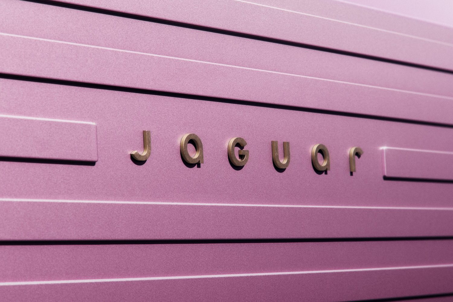 Measuring more than five metres long, the Type 00 isn’t discreet; in fact, it’s the perfect statement piece to announce that Jaguar is embarking on a new direction. View the Type 00 head on and it portrays an almost brutalist image with flat surfaces, including an embossed panel where one might expect to find a typical grille. The ‘strikethrough’ element, which is a repeating feature of the car and Jaguar’s new identity, is here produced in relief and carries the new Jaguar word mark. Thin LED headlights reinforce the broad, horizontal lines of the Type 00’s front, as do the two lower LED strips.