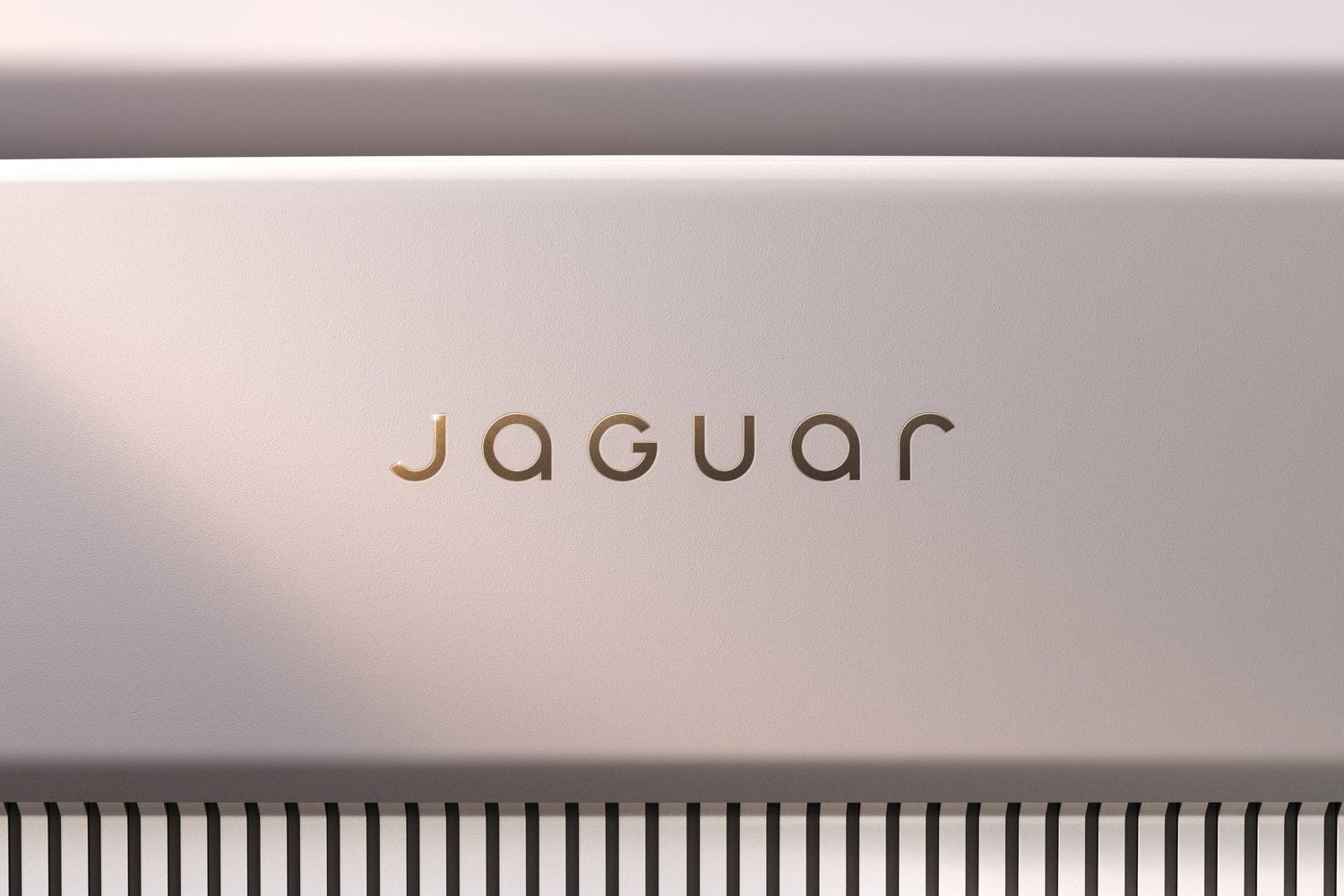 Jaguar’s designers have clearly sought a reductionist approach to this car, with few lines or curves beyond what’s required. The body surfacing is consistent and rear haunches double down on its proportions. A wide panel that follows the roofline features a debossed strikethrough design that discreetly houses the rear lights. Luggage space consists of a rear deck behind the seats, accessible via a windowless pantograph boot lid.