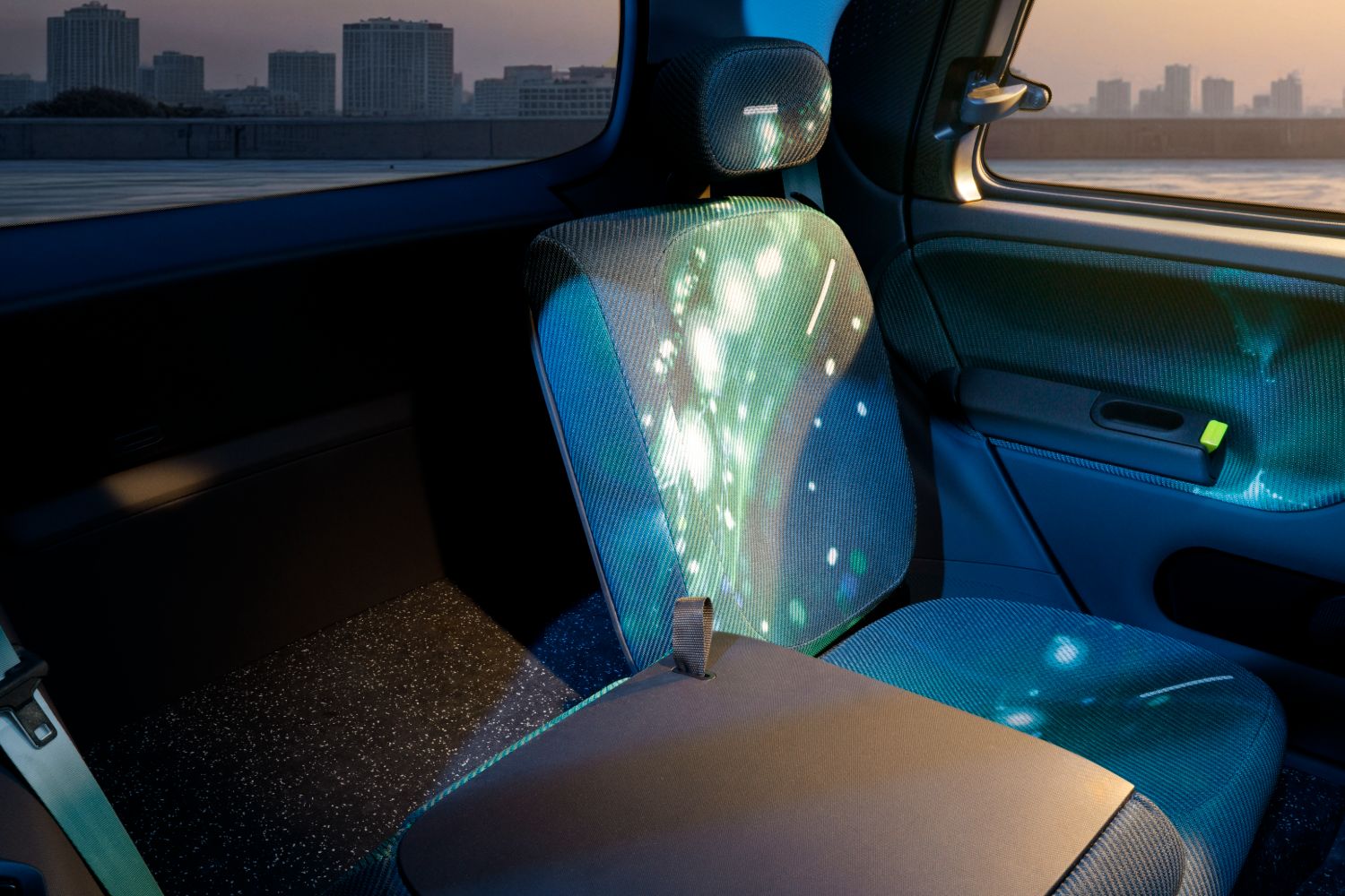 The show car in Brussels has a tinted-cork floor, which is a sustainable material that is said to be durable enough to stand up to the rigours demanded of a car’s footwells, while the upholstery of the prototype is inspired by the colourful patterns that were found in the Twingo Mk1.