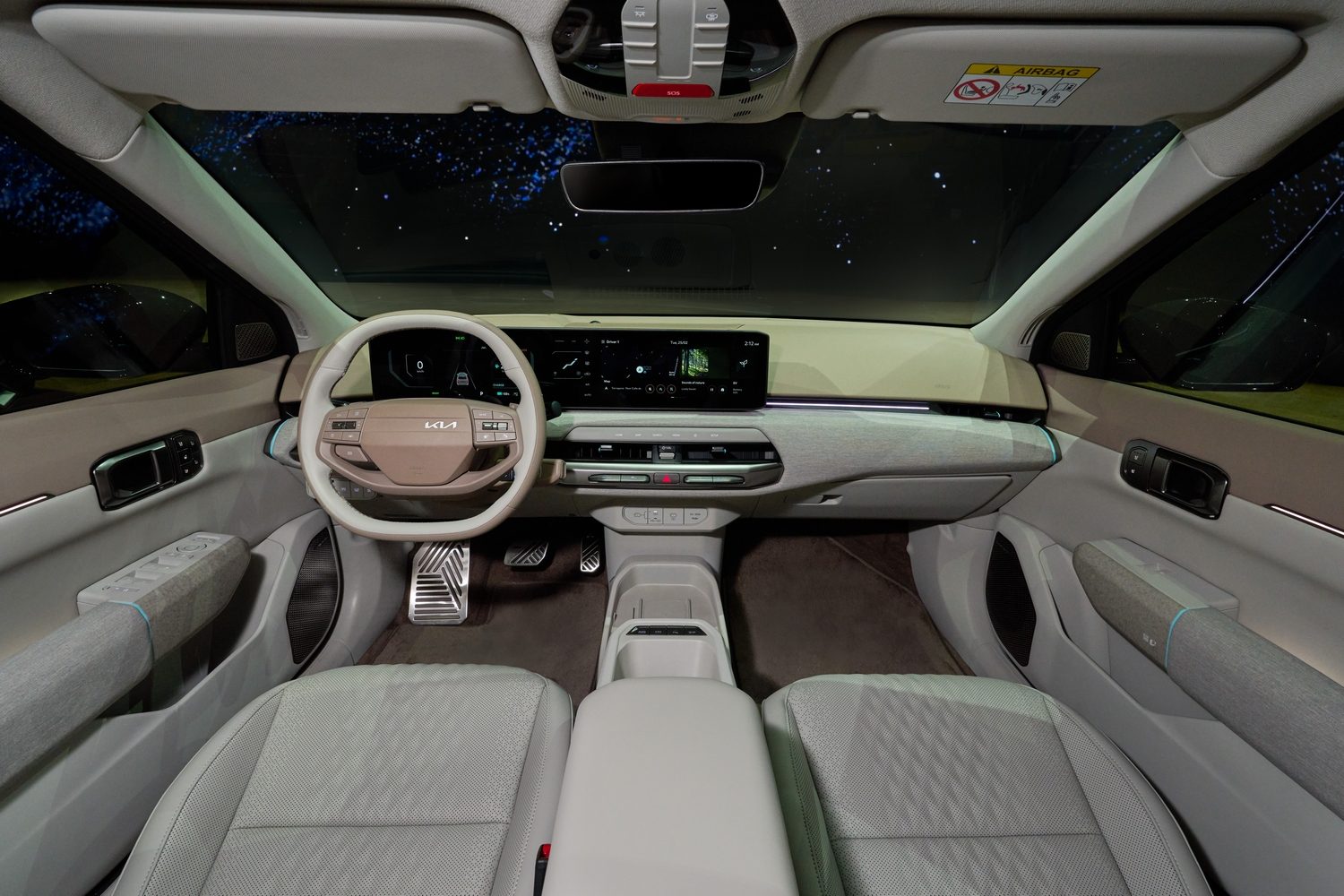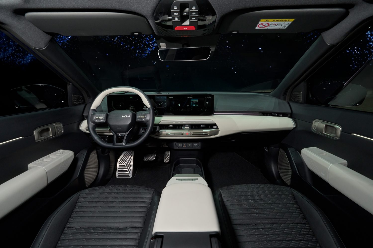 It continues along the same lines as the Kia EV9 and EV3 before it in terms of a mix of physical switchgear, a large expanse of digital screens and tactile, yet sustainably sourced, materials.
