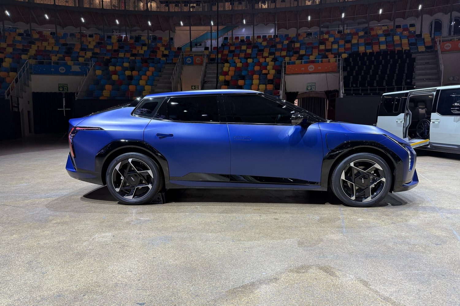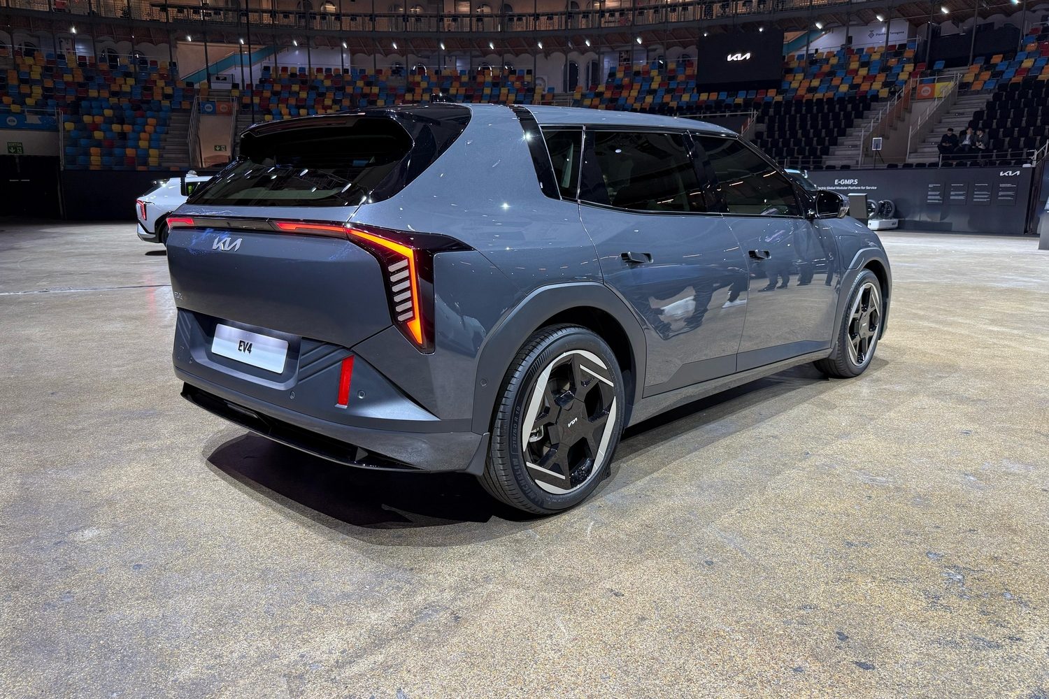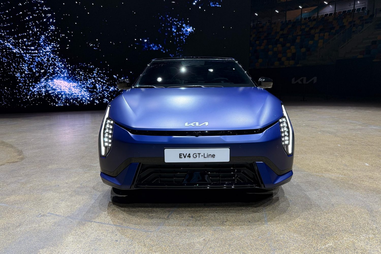 It’s clear the EV4 is from the same school of design that has already brought us the huge Kia EV9 SUV and the EV3. Kia calls it “Opposites United” and it includes distinctive treatment of the wheelarches.