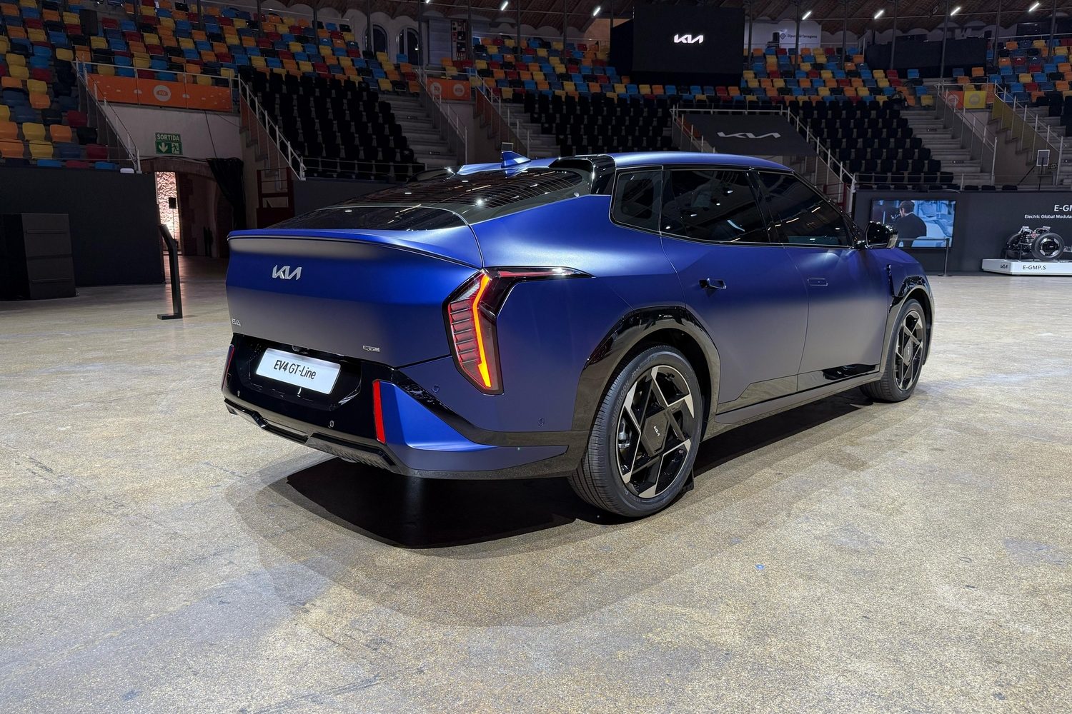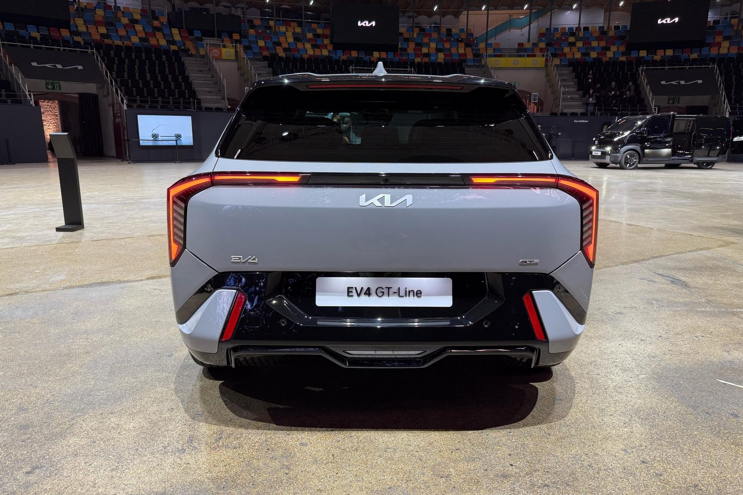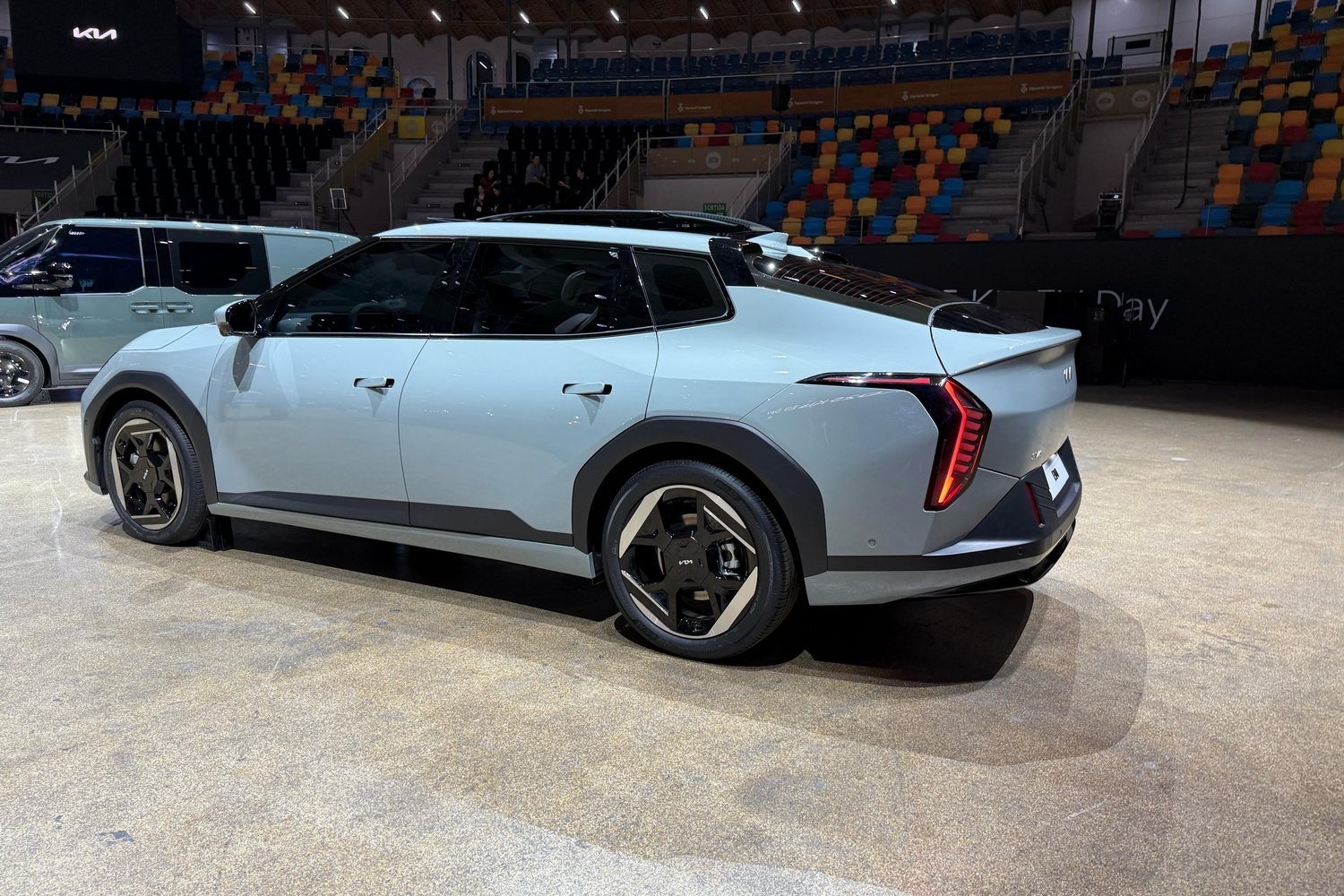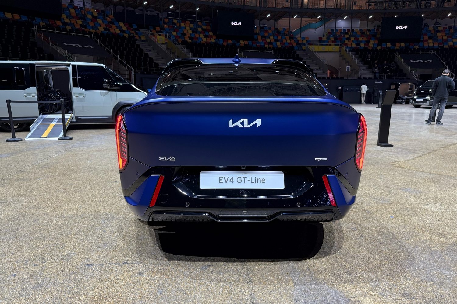 It’s clear the EV4 is from the same school of design that has already brought us the huge Kia EV9 SUV and the EV3. Kia calls it “Opposites United” and it includes distinctive treatment of the wheelarches.