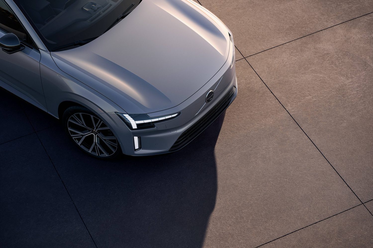 It may be an entirely new car, but there is a familiar feel to the ES90’s exterior design, starting with the distinctive ‘Thor’s Hammer’ headlight design, and this LED daytime running light signature extends into the lower bumper section. Volvo’s ‘Iron Mark’ emblem is front and centre on the nose, with a smaller aperture in the bumper for cooling. Deep scallops run along the edges of the bonnet, creating a powerful but planted look.