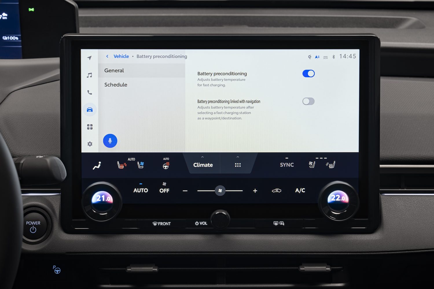 Toyota says the WLTP range will be up to 567 kilometres, which is for the front-wheel-drive variant using the larger battery, while peak charging speeds are 150kW on DC or up to 11kW on three-phase AC chargers (though some models will come with 22kW AC charging). To further speed up charging, there's a new pre-conditioning function that can be activated manually, or automatically when you navigate to a charging station.