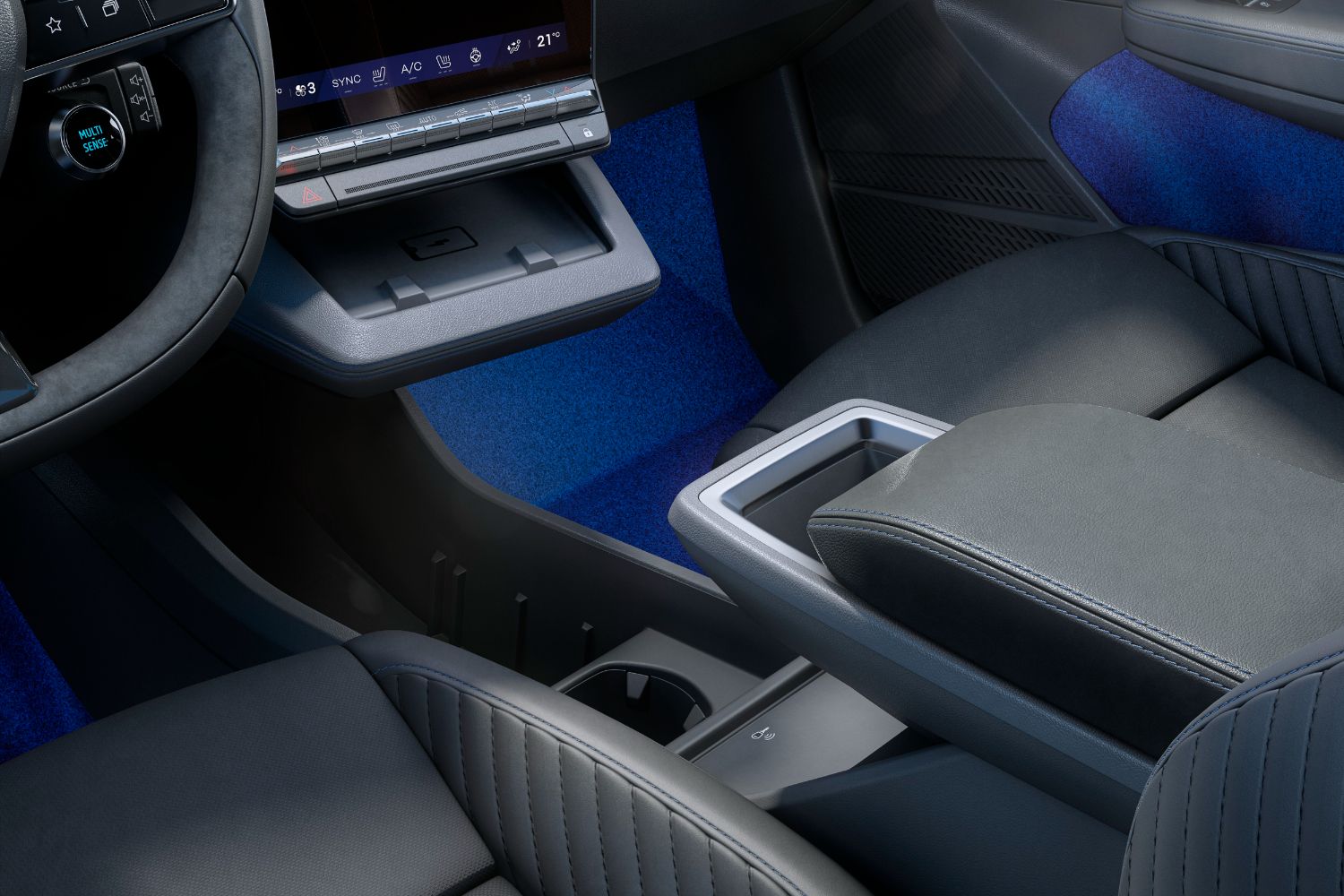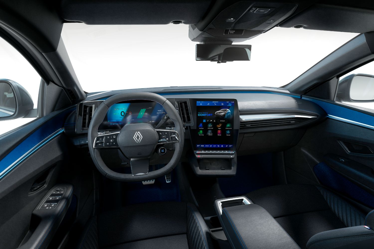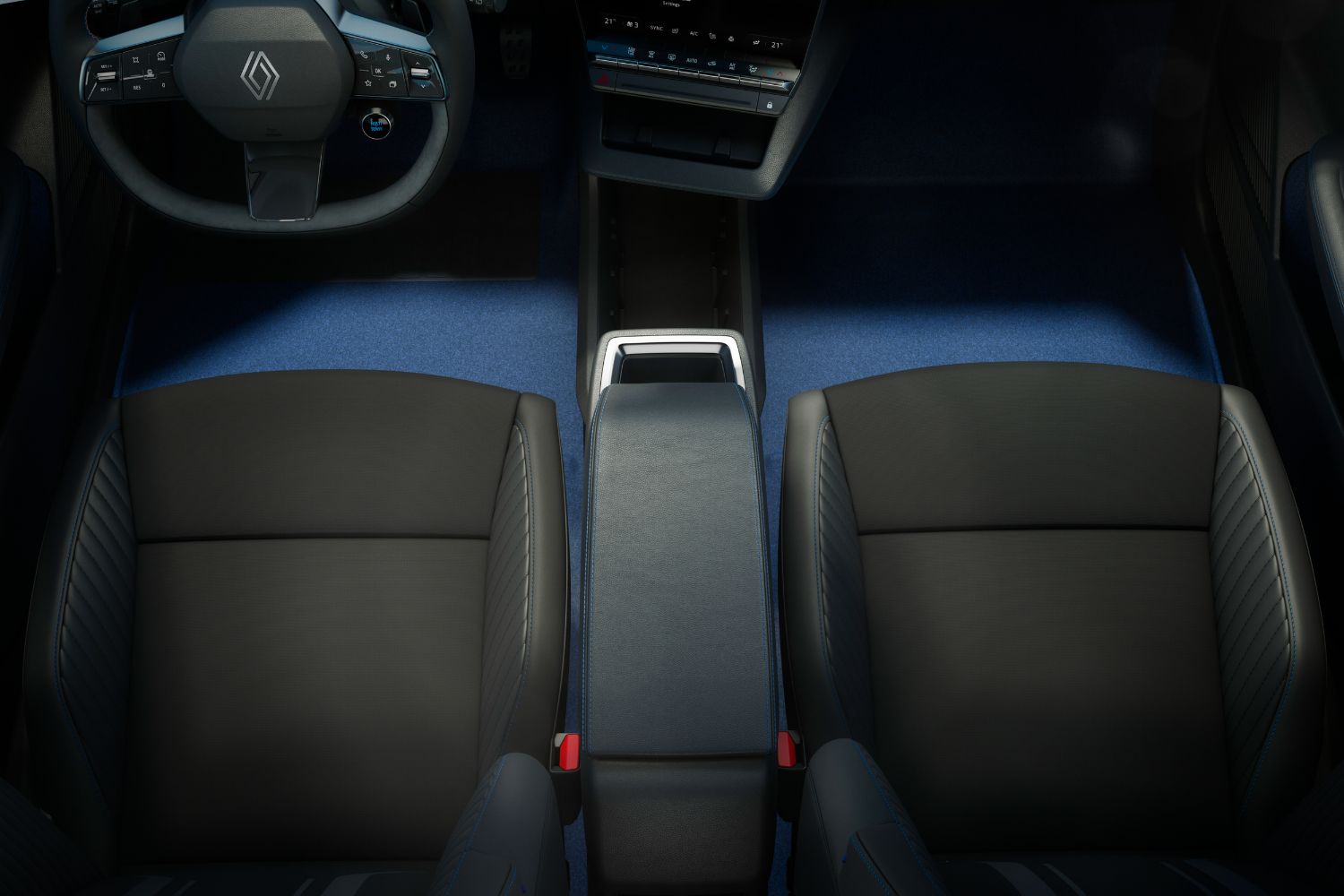 Finally, there's a new range-topping specification for the Megane - Esprit Alpine, which brings the Megane into line with the rest of the current Renault lineup. Esprit Alpine trim includes as standard 'Matte Shadow Grey' exterior trim and front aero splitter, 'Ice Black' 20-inch alloy wheels, 'Ice Black' logos and badges, 'Gloss Black' window trims, and Esprit Alpine badges. Inside, there are new sportier seats with a black embossed fabric that's meant to emulate the feel of running shoe materials, slim red, white, and blue French flag badges, and contrast blue stitching for the dashboard.