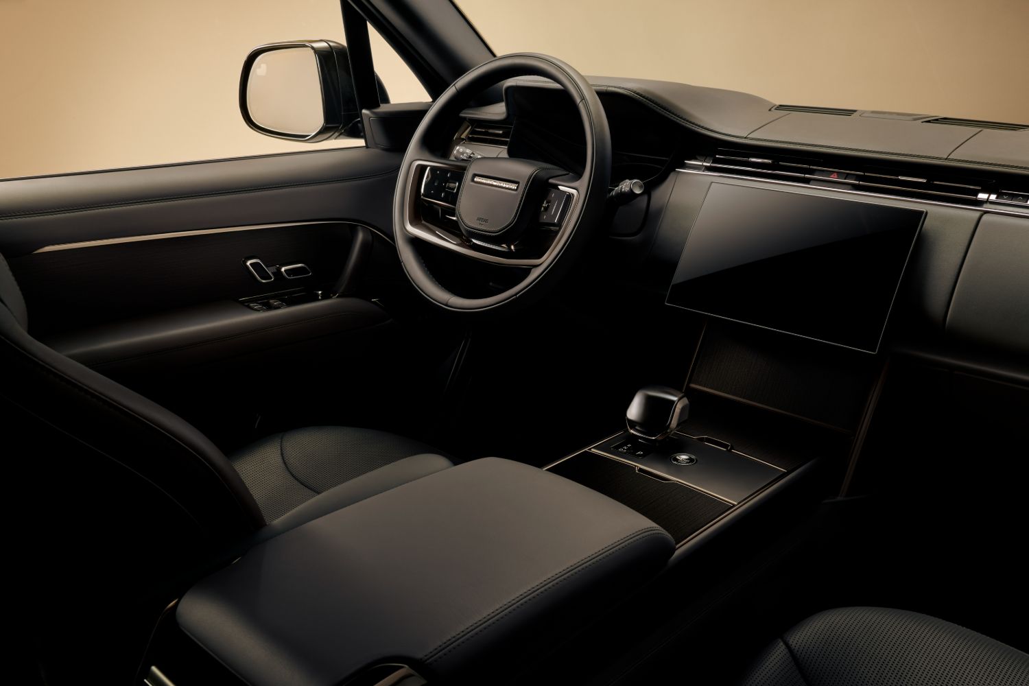 Inside, there are 'Ebony' leather seats in a 'near Analine' finish, and for the first time the Range Rover gets single-panel seat covers which feature fewer stitches and seams. There are black birch wood veneers and black ceramic finishers for the likes of the gear shifter.
