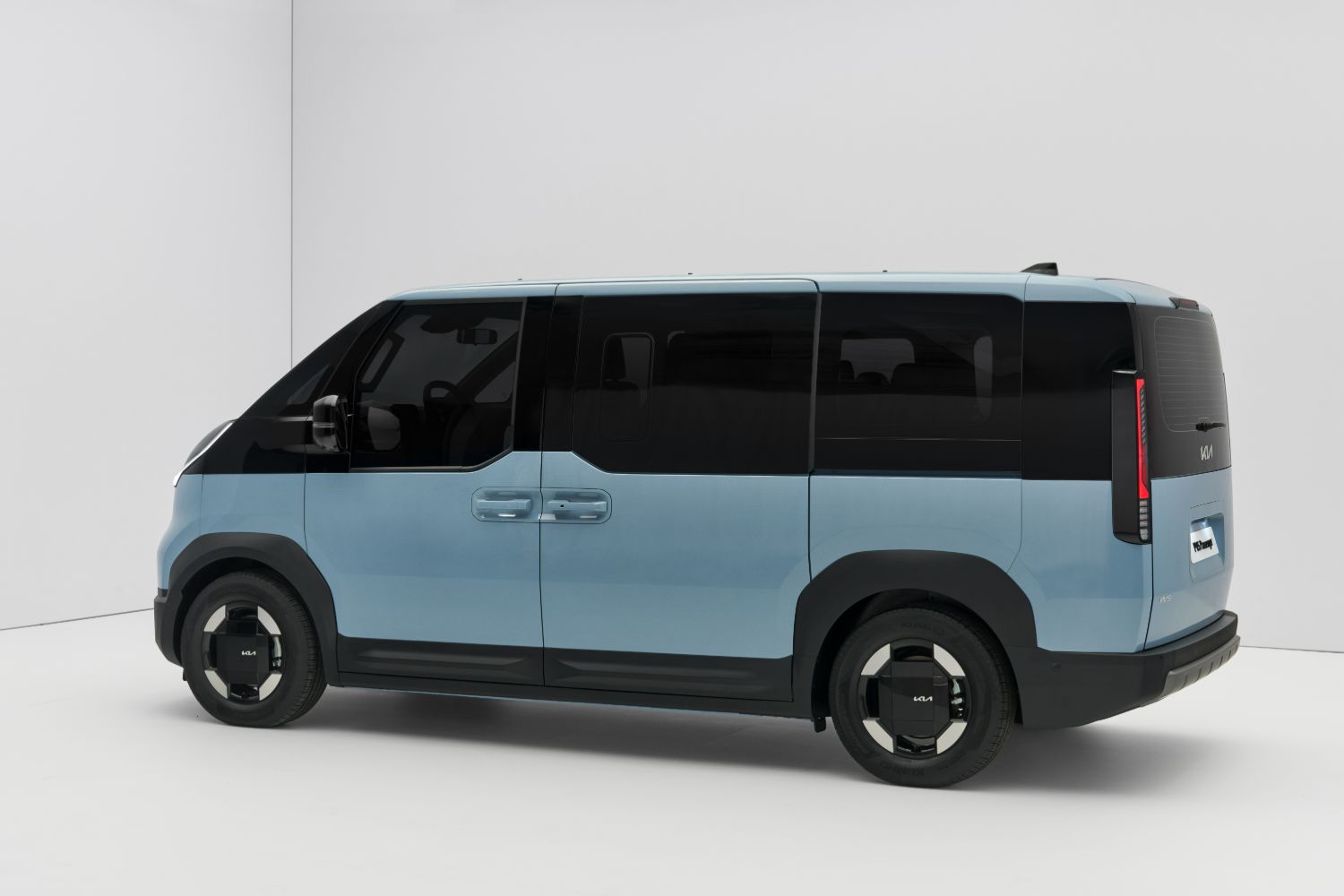 It certainly is. For what is a commercial van (the two-seat cargo version is also available) Kia has really gone to town on the space-age styling, the blacked-out side glass, and the slim LED lights. According to Kia: “Robust black wheel arch claddings and rocker panels give continuity with Kia's SUV line-up while the bold lighting signature and sleek black accents elevate its modern appeal. The rear showcases an elegantly chamfered D-pillar line that enhances the vehicle's sense of volume while the electric tailgate, set above a strong protective bumper ensures maximum practicality.”