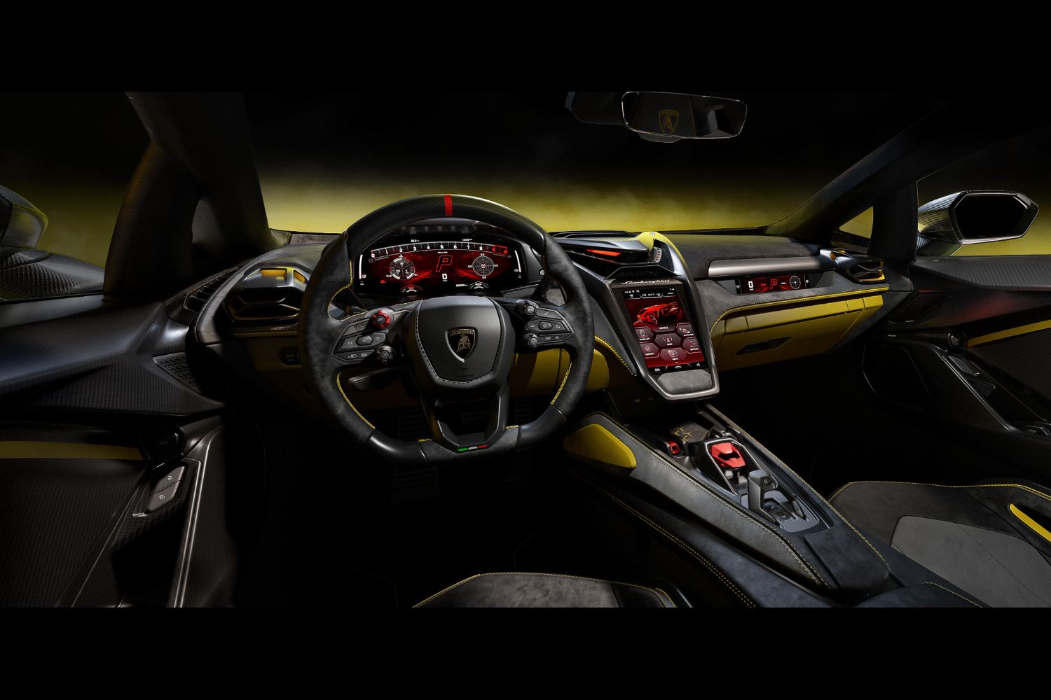 The body is mostly made from carbon-fibre, which means that the Fenomeno has the same weight as a standard Revuelto — 1,772kg — but with the higher power, it has the best power-to-weight ratio of any Lambo ever, 635hp per tonne.