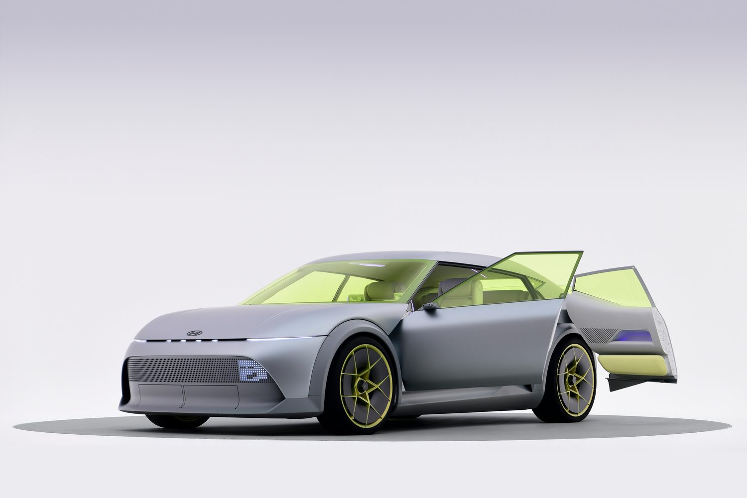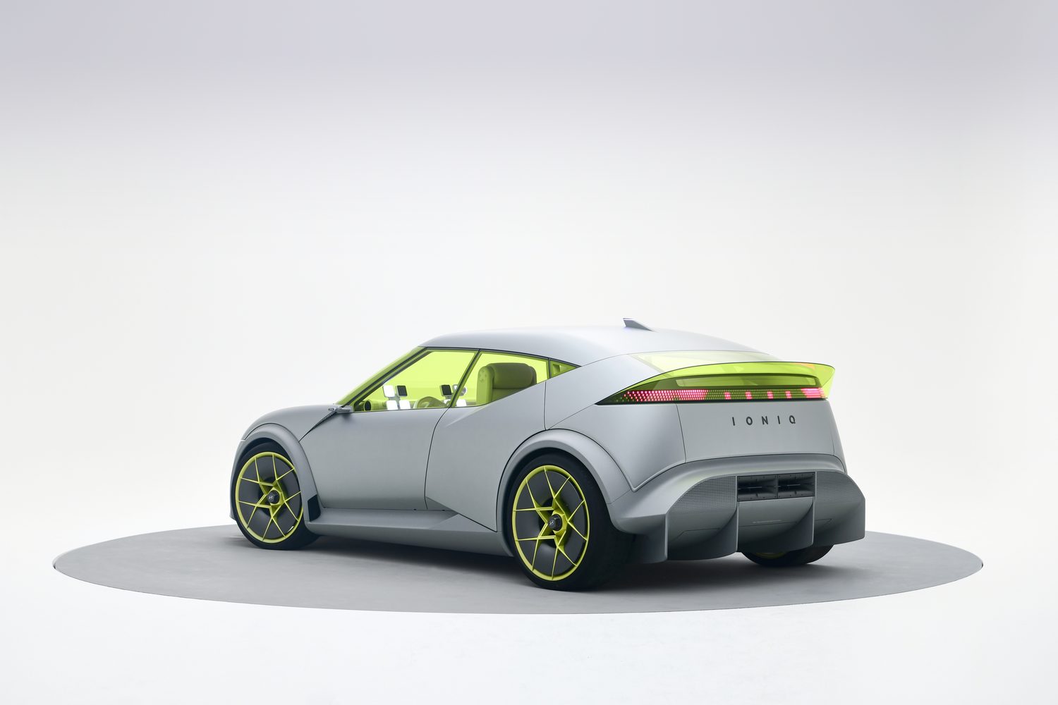 What we can expect to change are the typical concept car items. The rear-hinged back doors will give way to a more traditional setup and items such as the yellow-tinted plastic ducktail spoiler will be replaced with a more conventional, non-transparent one. The forthcoming Ioniq 3 will retain the overall proportions of the concept, however, including the distinctive upward lines around the rear wheels.