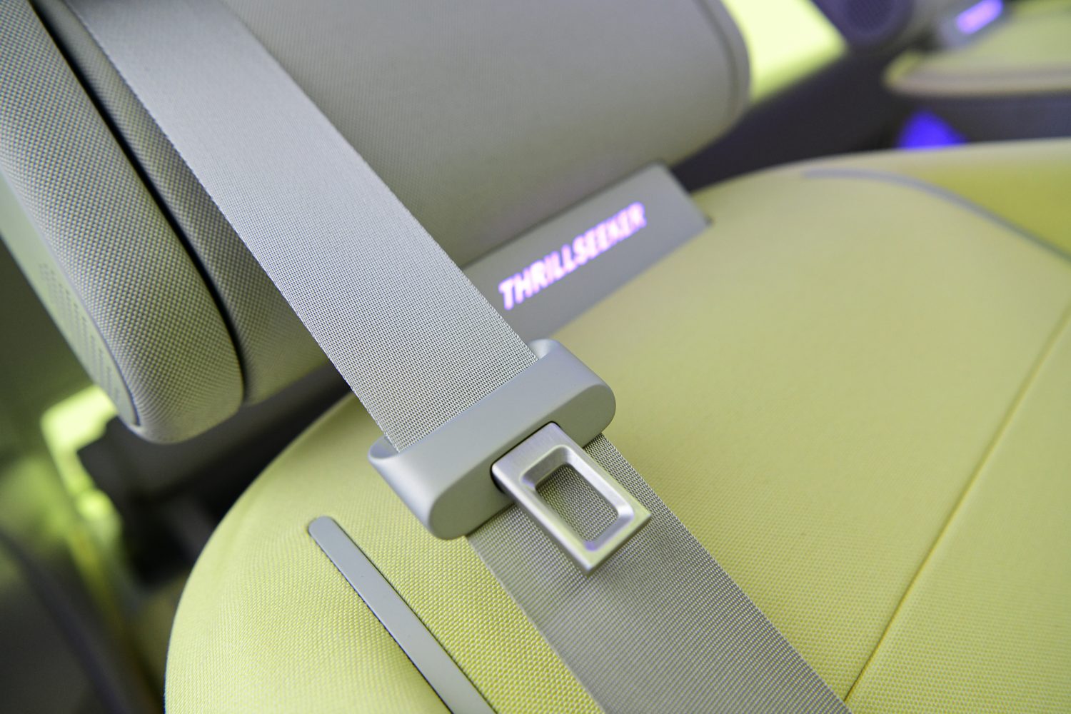 Those seated in the rear look like they're in for a comfortable journey, with the rear seat more like a couch. Its base is angled downwards so you really fall into the seat and there's a single cylindrical headrest that spans the rear.