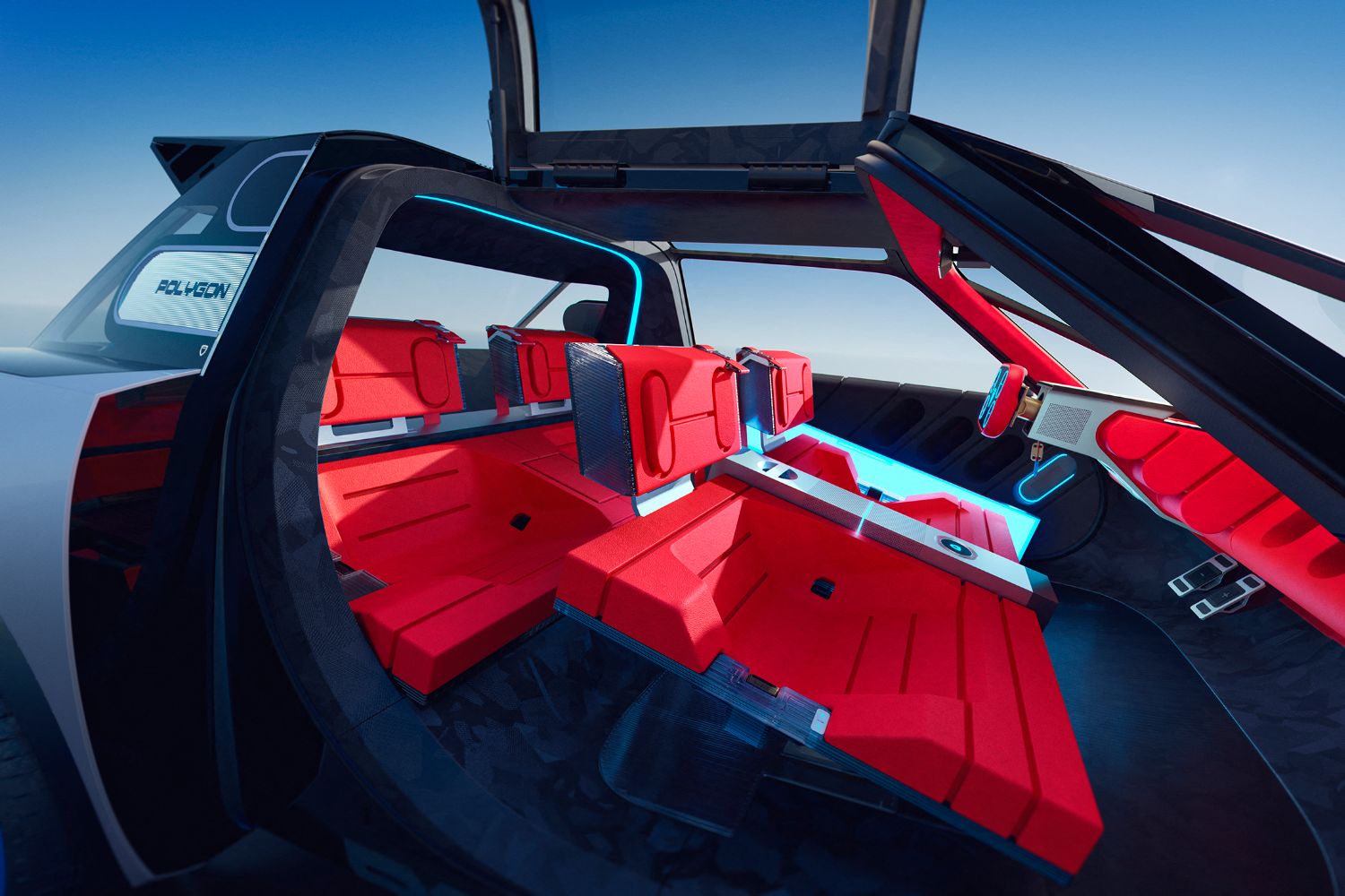 On a more serious note, the Polygon also uses Goodyear's 'Sightline' system, which gives the driver real-time data regarding tyre pressure, temperature, and wear, and which can be customised according to the car's three driving modes - Cruise, Fun, and Hyper.
