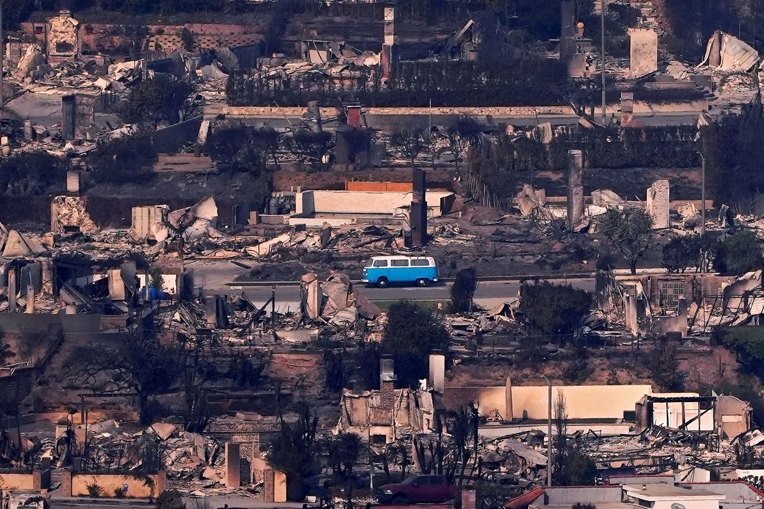 It's called Azul, in case you were wondering. It's also known as the 'Magic Bus' - a 1977 Volkswagen T2 bus that somehow, against the odds, survived when all around it was burned during the devastating fire which swept through California in January. The bright blue bus became something of a beacon of hope for the communities hit by the fire - if it could survive, maybe anyone could.