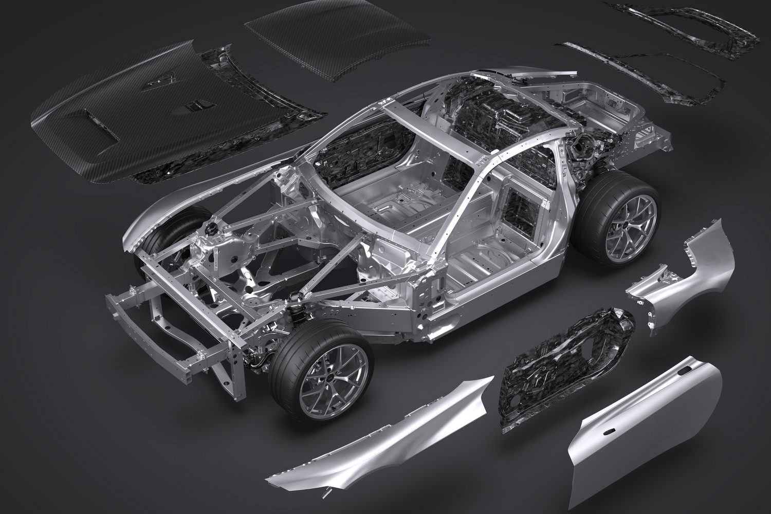 That's thanks in part to Toyota's first ever all-aluminium body frame using large castings and what Toyota calls "advanced joining technologies”. The body panels themselves are aluminium or CFRP.