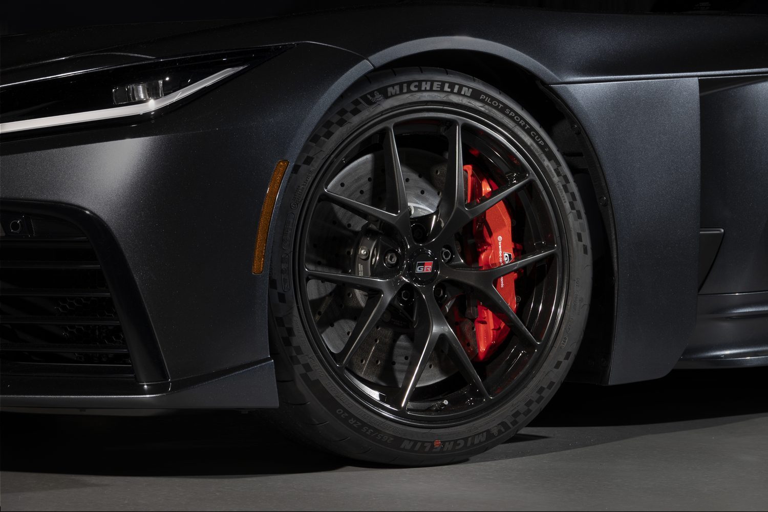 Forged aluminium is used in the double-wishbone suspension, while carbon-ceramic brakes by Brembo are also included. Lightweight 20-inch alloys top off the chassis package, and Toyota tells us that Vehicle Stability Control system allows the driver to choose their favoured "vehicle control difficulty level” depending on weather conditions and their skill level.