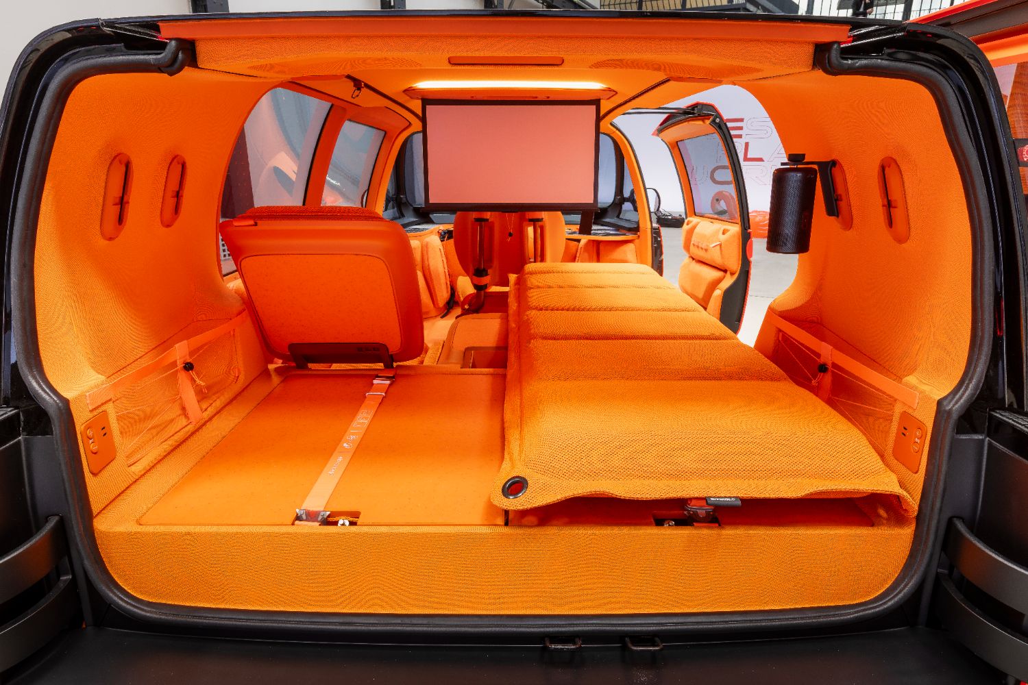 Oh, wait, there's more. The back seats fold down as well, and can be used as bases for inflatable mattresses, which fold up for storage in the boot, turning the ELO into a dinky little camper van. A camper van complete with a screen for a projector that clips onto the ceiling, allowing you to watch movies under the stars. There's also an external power socket and an air pump for inflating mattresses and bike tyres.
