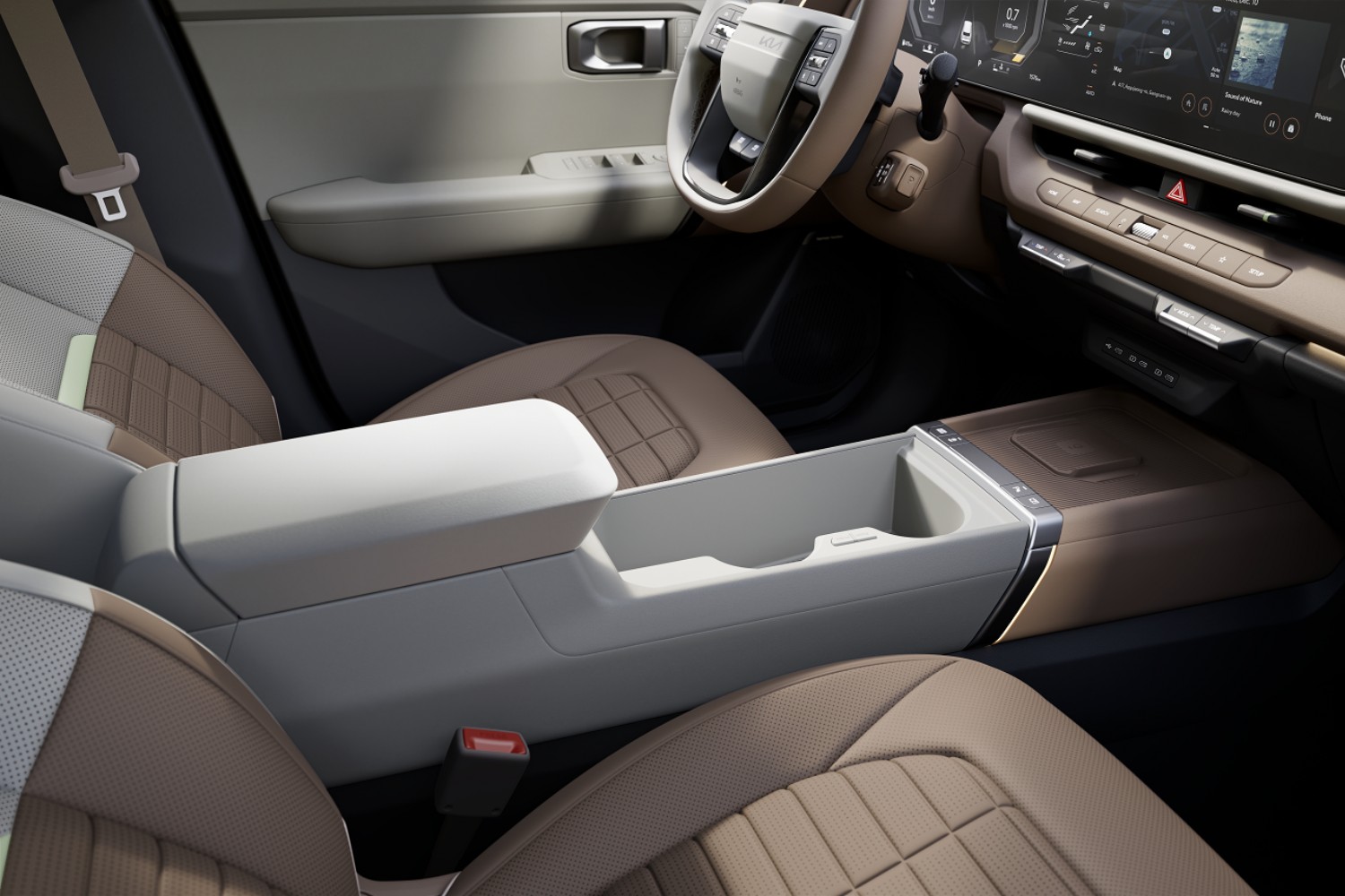 It's very much a car in the current Kia styling idiom, with clean, uncluttered lines, upright LED headlights, and a side profile very reminiscent of the EV5 and EV9.