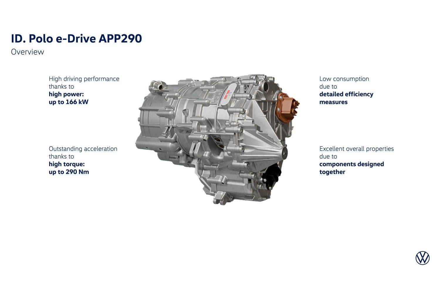 It will get a 226hp maximum power output from the 'APP290' electric motor and use the same 52kWh battery that features in the standard ID. Polo. APP stands for Axial Parallel Position, while the '290' refers to the maximum torque output in Newton metres.