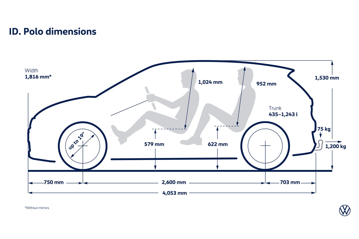 The exterior dimensions of the Volkswagen ID. Polo are: