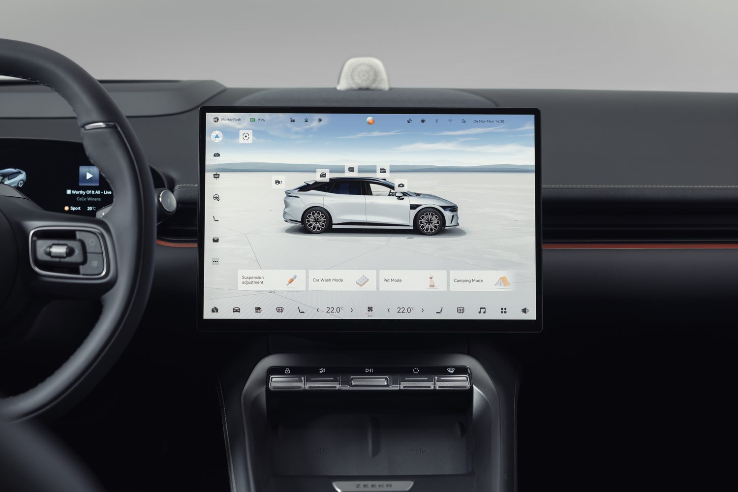 As with so many Chinese EVs, the focus inside the Zeekr 7GT is on technology. Occupants are greeted by a 13-inch infotainment screen dominating the dash, while the driver is the beneficiary of a 35.5-inch augmented reality head-up display.