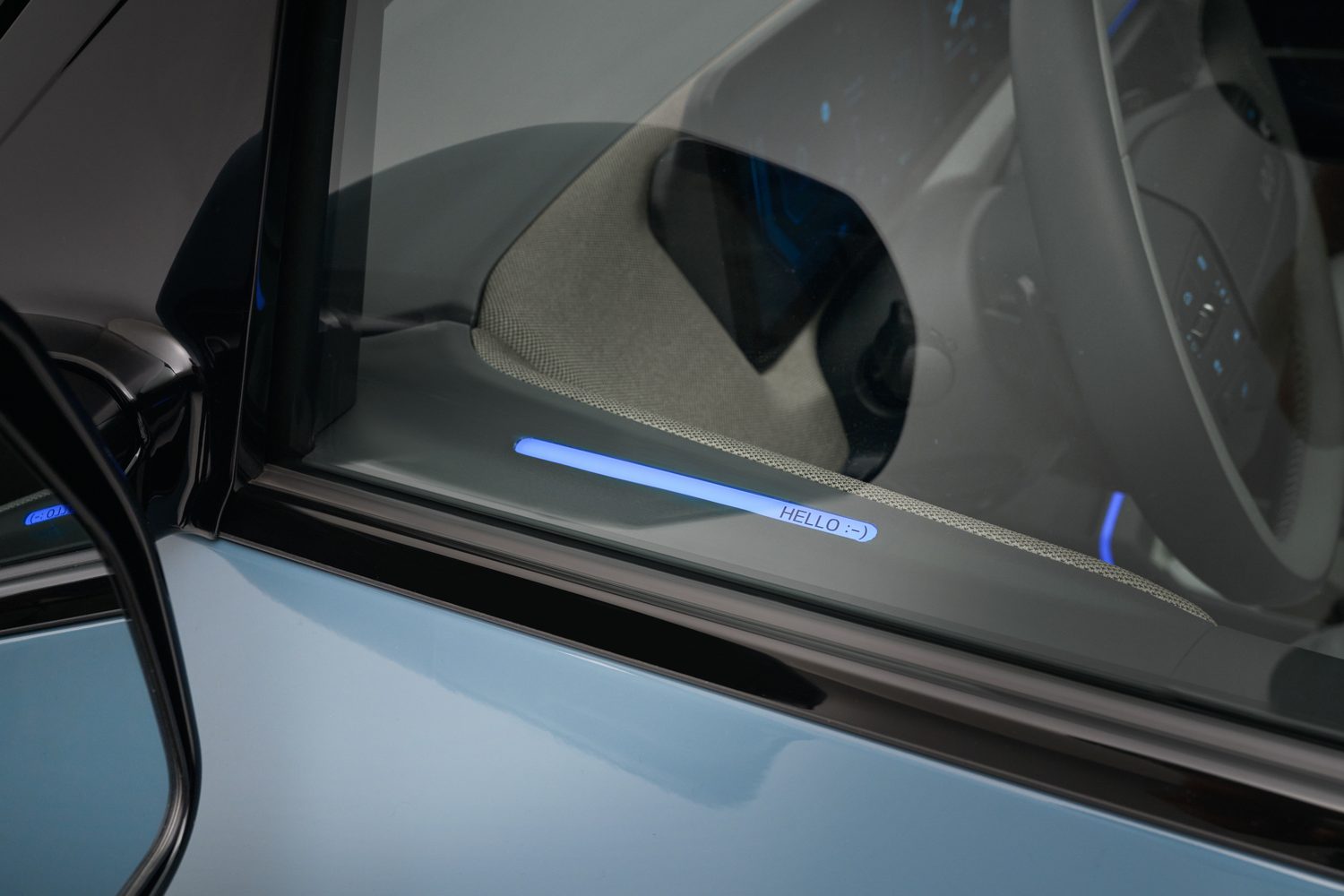 Baseline models get a two-spoke multifunction steering wheel while the EV2 GT-line gets a different three-spoke design. The dashboard features a fabric fascia that extends into the front doors, while ambient lighting offers a variety of colour options.