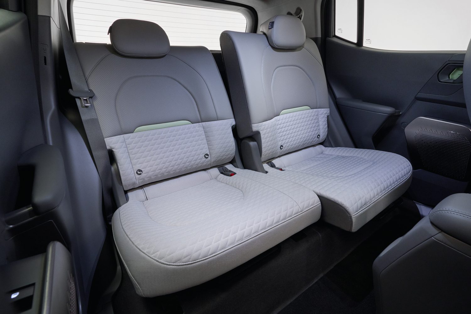 There will be the choice of either a four- or five-seat setup in the EV2. The four-seat version provides broader, more comfortable seat bases for those in the rear, and the two rear seats slide forward and back independently, increasing legroom from 885mm to 958mm - more than in a Kia Ceed, for reference.