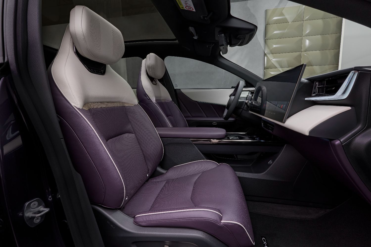 The CX-6e is 4.8 metres long, and the long wheelbase of 2.9 metres means that there's plenty of rear seat space, plus there's a useful 484-litre boot. Seven colours will be offered, and the car displayed at the Brussels motor show is wearing a new 'Nightfall Violet' colour. Inside, you'll have the choice of three colour scheme options - Warm Beige, Black Maztex or Amethyst and White.
