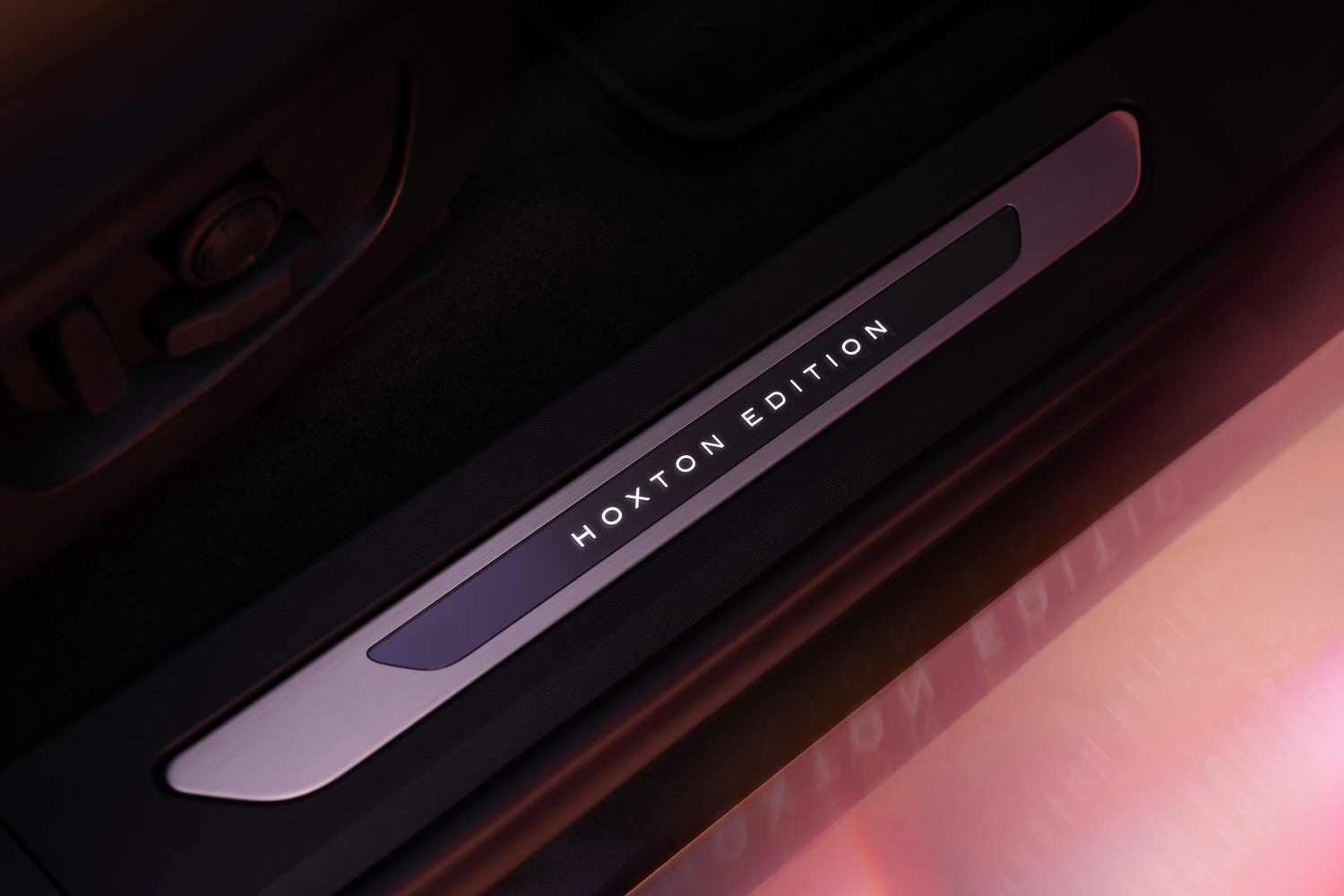 Inside, there are leather seat facings with contrast stitching, and illuminated Hoxton Edition treadplates with a black brushed aluminium finisher.