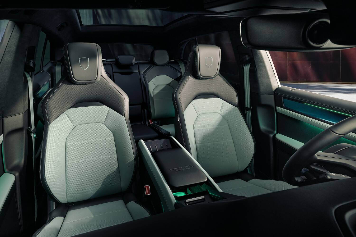 One of those is the distinctive Mystic Green Metallic paint, which comes with two-tone leather upholstery in Black and Delgada Green, with colour-coded seatbelts. There's Delgada Green stitching for everything too, including the Porsche logo embroidered into the headrests.