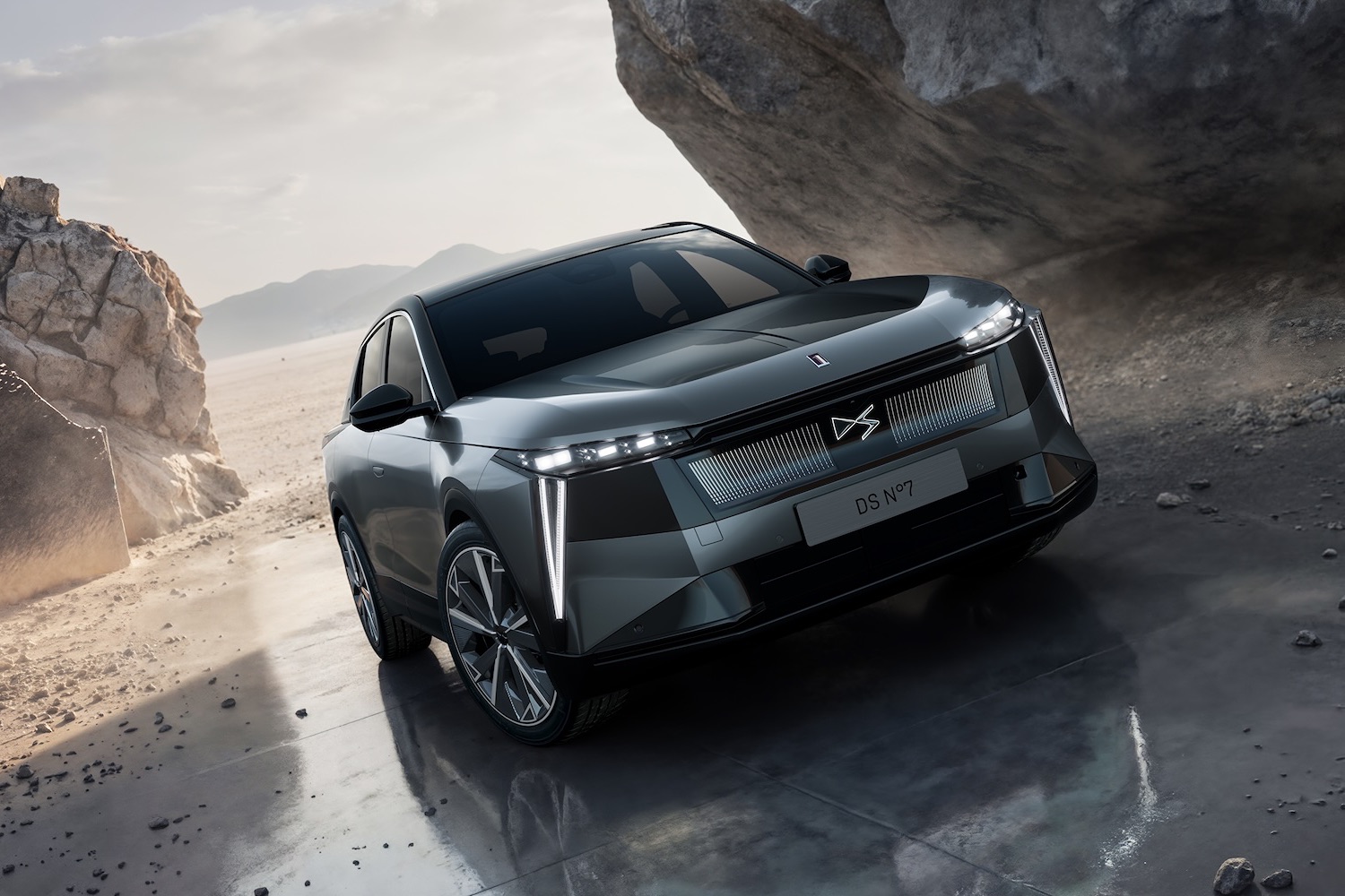 At the front, there's a clear relationship to the DS No.8, with a light-up grille and slim headlights with deep-cut LED daytime running elements. For a tall car, the No.7 is also very aerodynamic, with a drag coefficient of just 0.26.