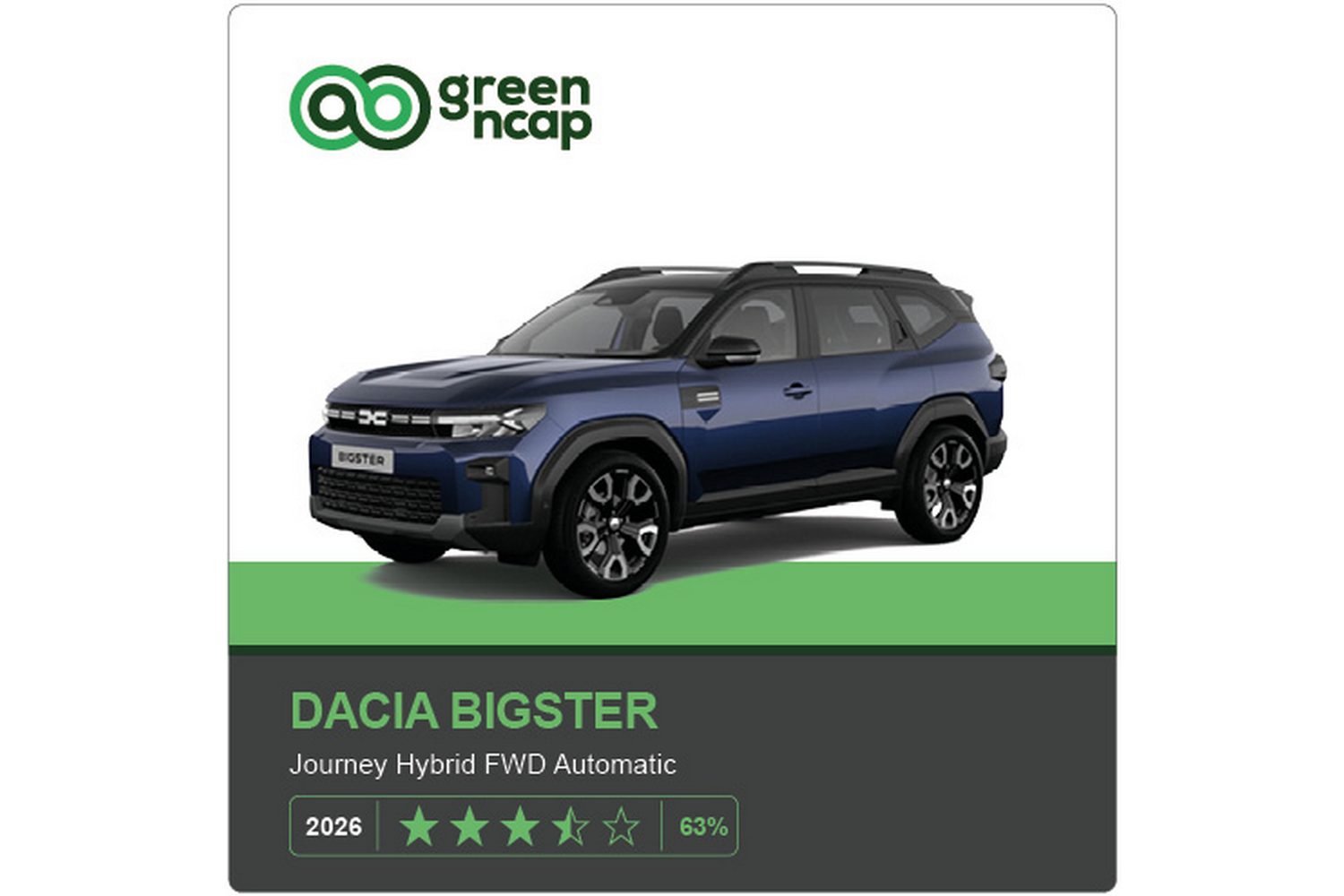 Green NCAP also had quite a bit of praise for another recent arrival from the Renault Group - the Dacia Bigster Hybrid. Not only is the part-electric Bigster a frugal car in its own right (we averaged an impressive 5.3 litres per 100km over a week's driving in one), but it's also so efficient that overall Green NCAP says it's a better buy than some all-electric models.